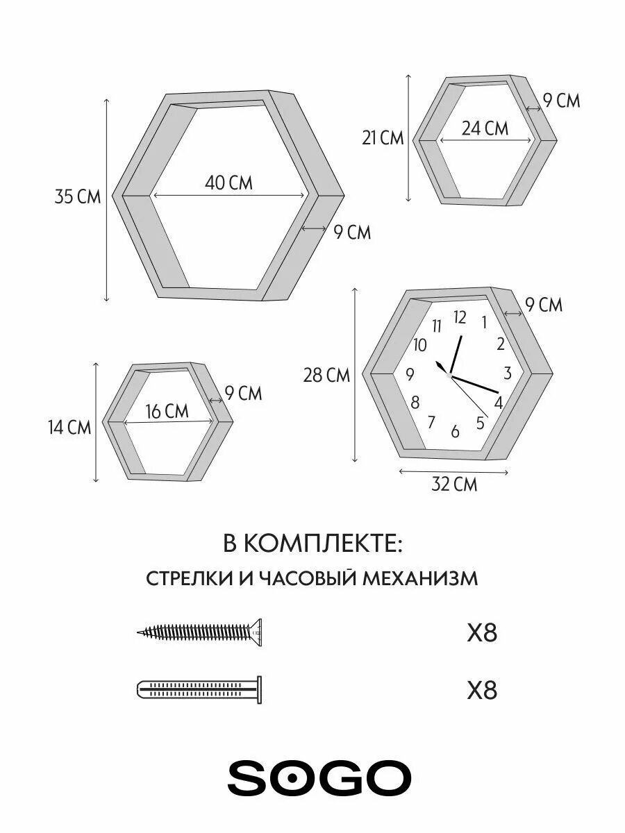 Полки декоративные соты на стену без покраски
