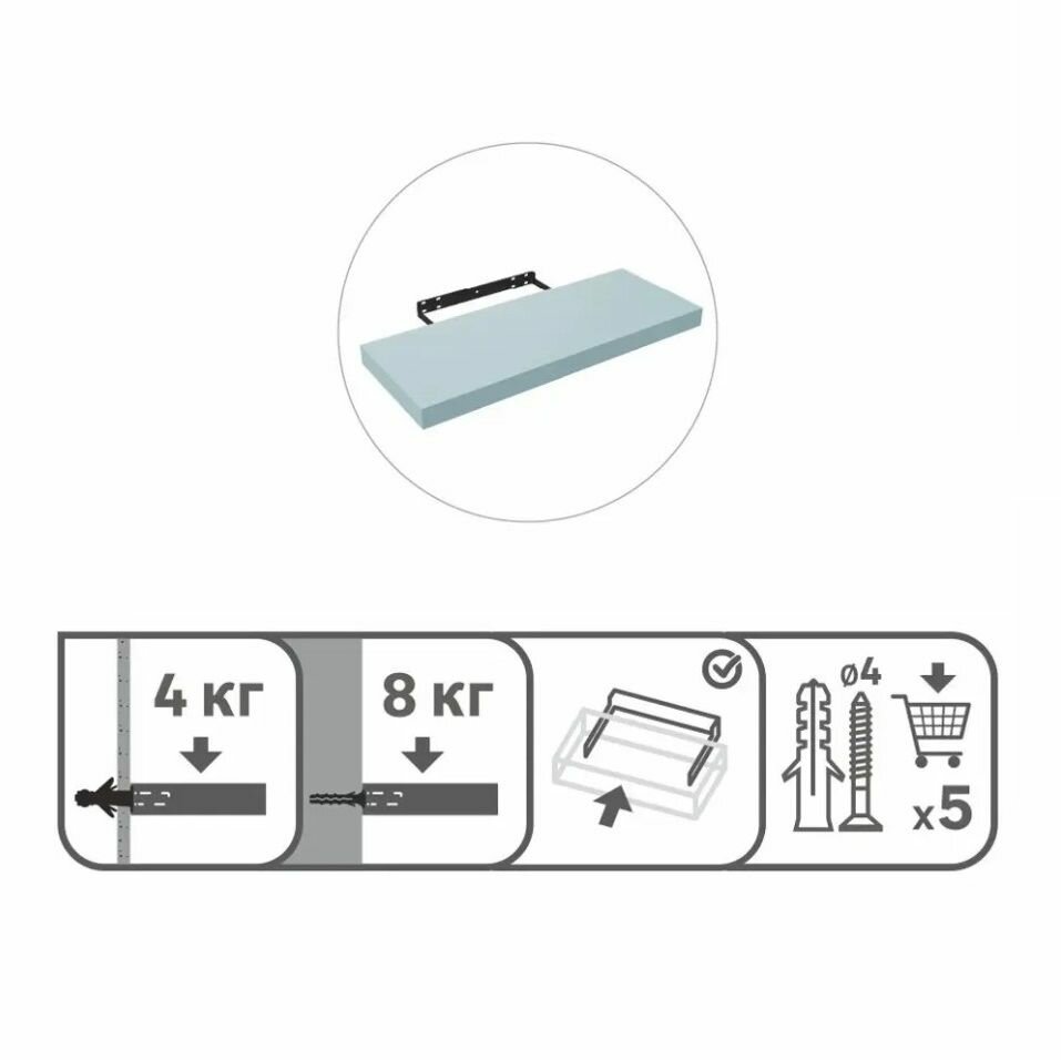 Полка настенная со скрытым креплением, 60x23.5x3.8 cм, цвет голубой интересное: