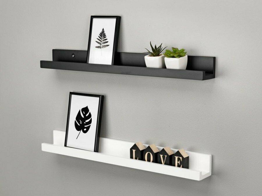 Полка Настенная Прямая Навесная, Для картин, для фотографий, 55х12х7 см, черная, 1 шт. интересное: