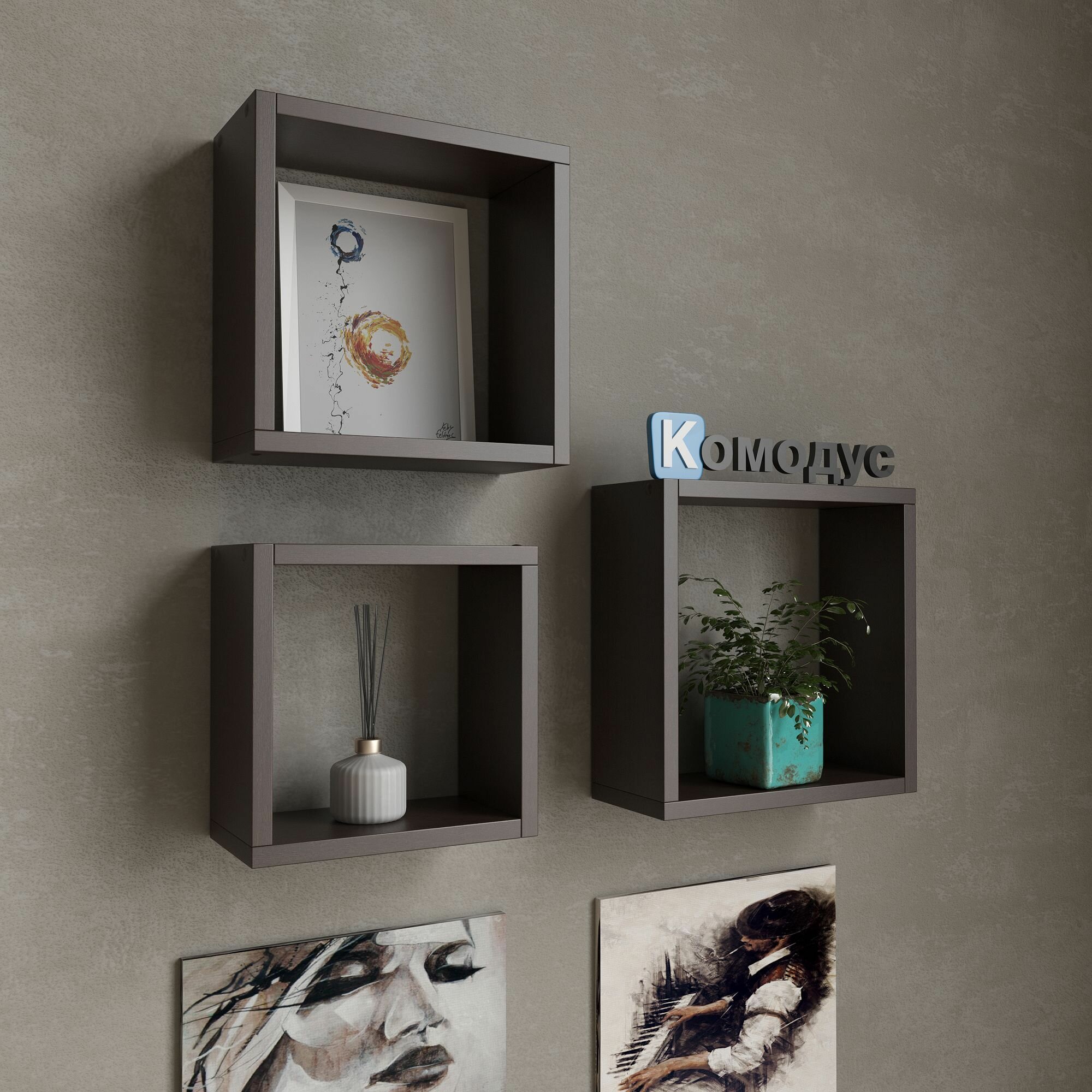 Полка настенная Кубик, (набор 30/27/24 см), венге интересное: