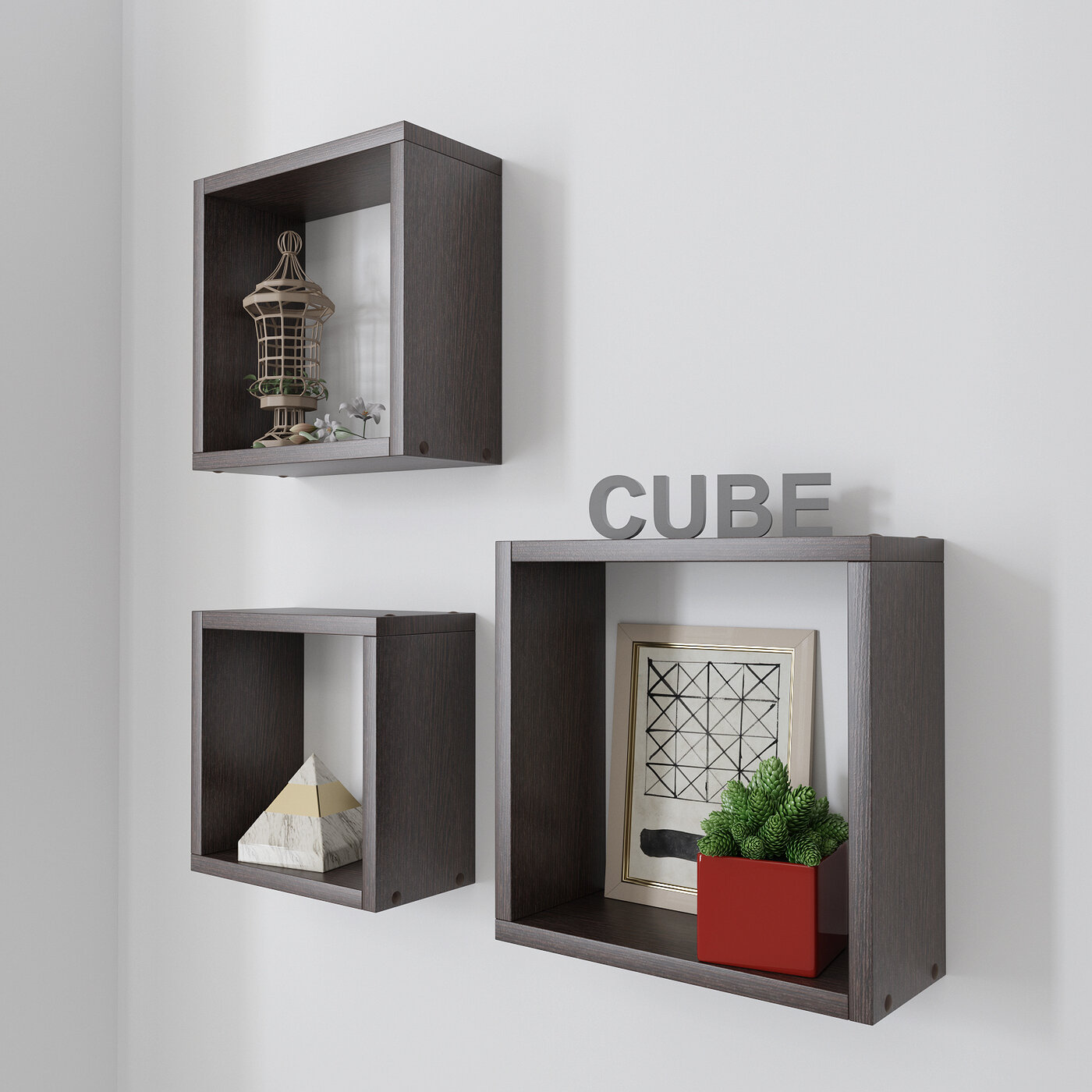 Купить Полка настенная Кубик, (набор 30/27/24 см), венге