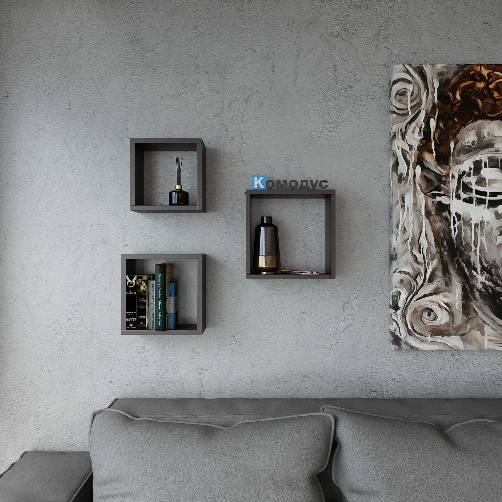 Полка настенная Кубик, (набор 30/27/24 см), графит