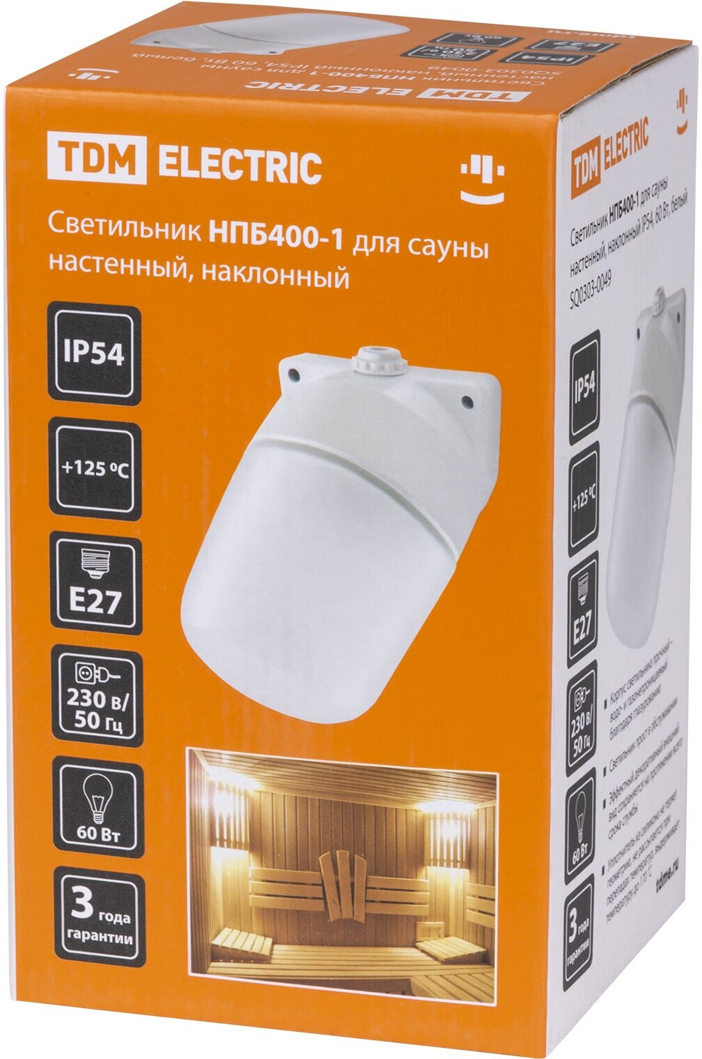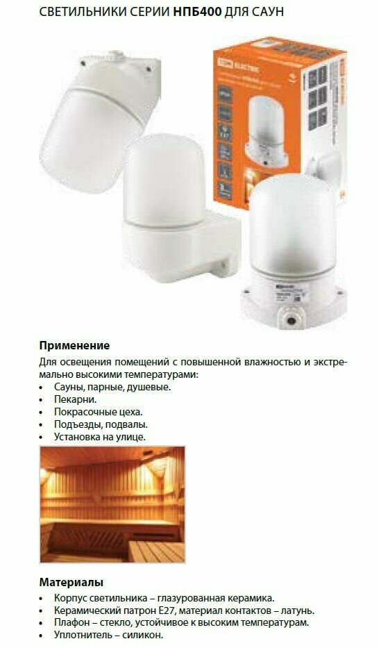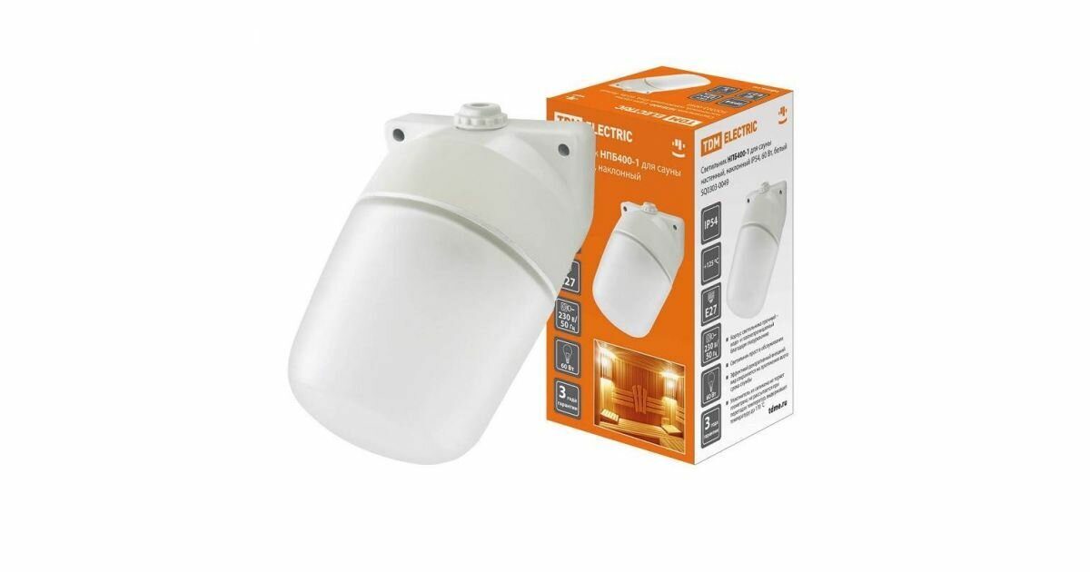 Светильник НПБ400-1 для сауны настенный, наклонный, IP54, 60 Вт, белый, TDM