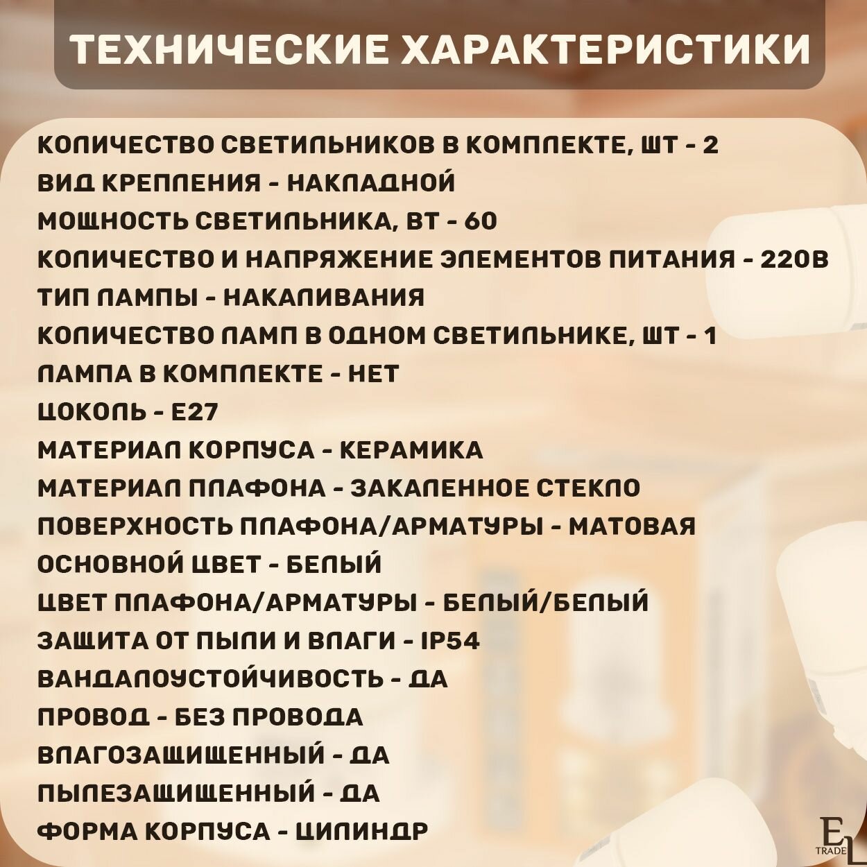 | Мощность одной лампы | 60 Вт |