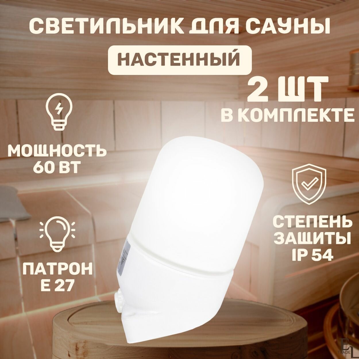 Светильник для сауны настенный комплект из 2 ШТ, E27, IP54, 60Вт, белый, 150*110*85 мм интересное: