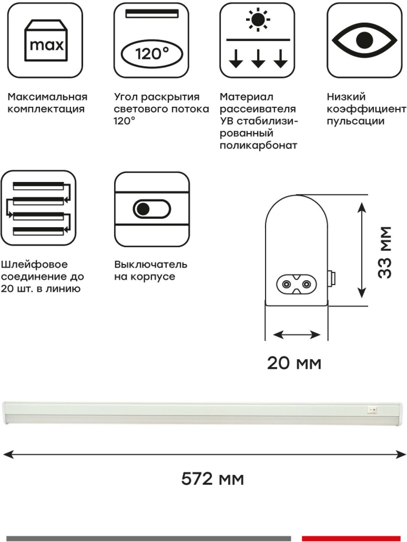 Светильник светодиодный линейный с выключателем ДБОВ-7102 7 Вт 4000K IP20 EKF Basic интересное: