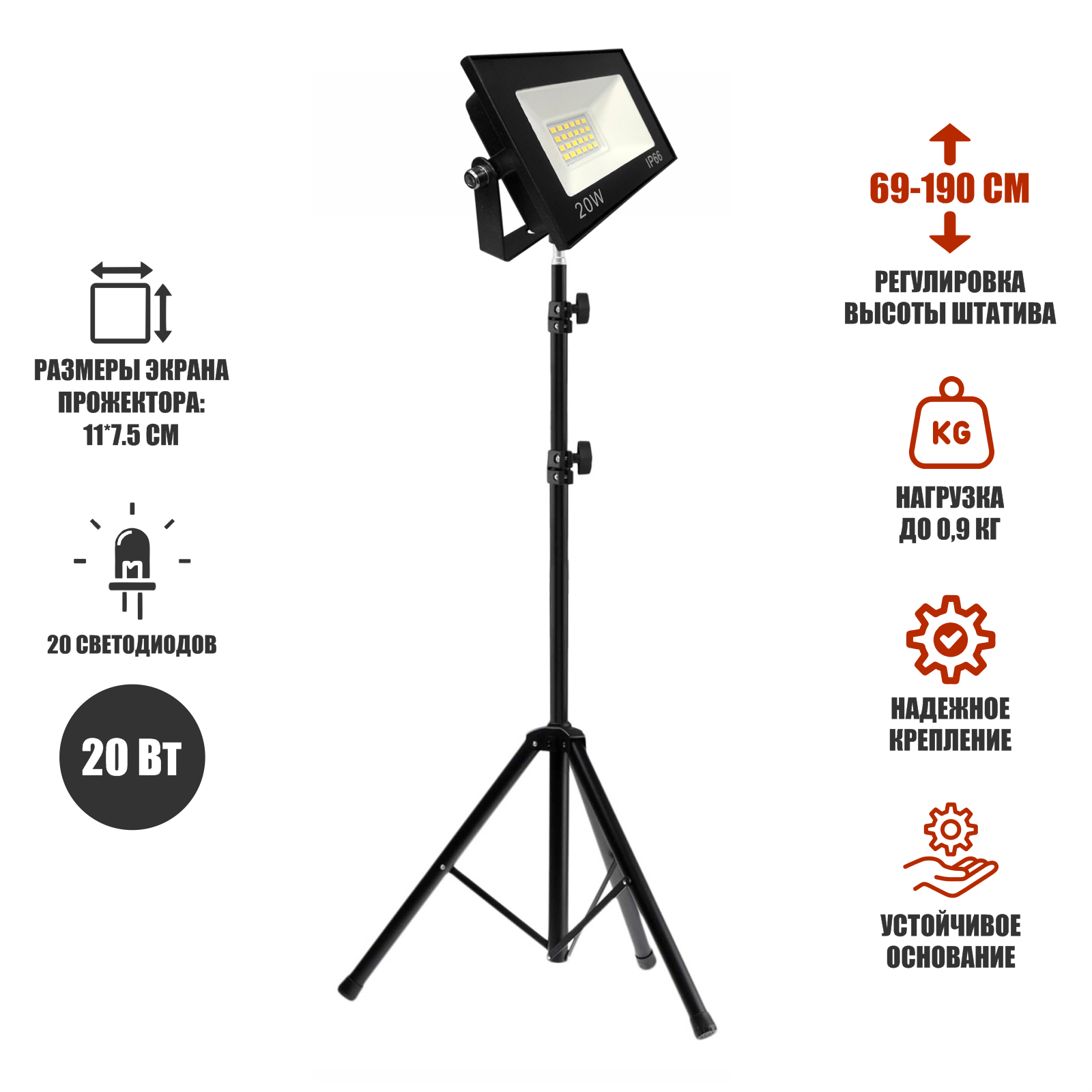 Купить Светодиодный строительный прожектор 20 Вт на штативе строительном JBH-PRJ