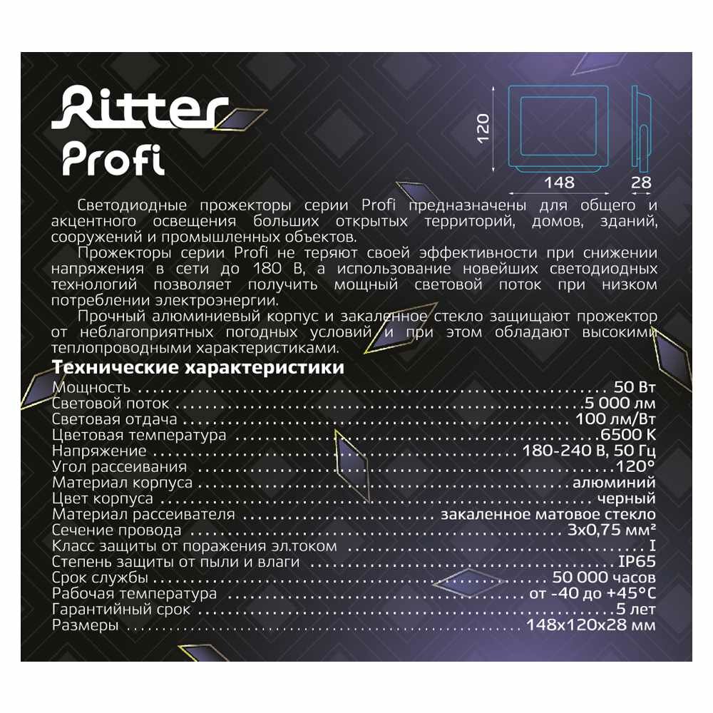 Прожектор светод серия PROFI, 230В, 50Вт, 6500К, 5000Лм, IP65, черн, гарантия 5 лет 53408 6 интересное: