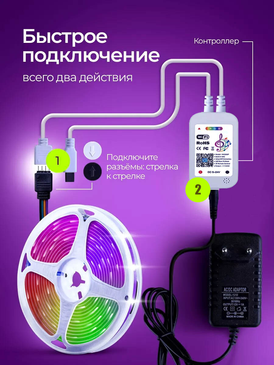 | Особенности | RGB-контроллер в комплекте / режим ночника / самоклеящаяся основа |
