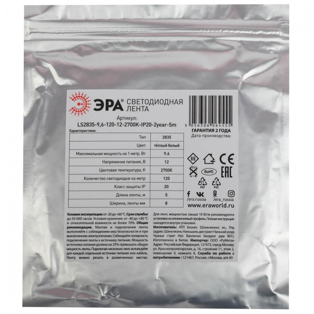 Купить ЭРА Светодиодная лента ЭРА 9,6W/m 120LED/m 2835SMD теплый белый 5M KU-2835AD-120D-WW Б0044112