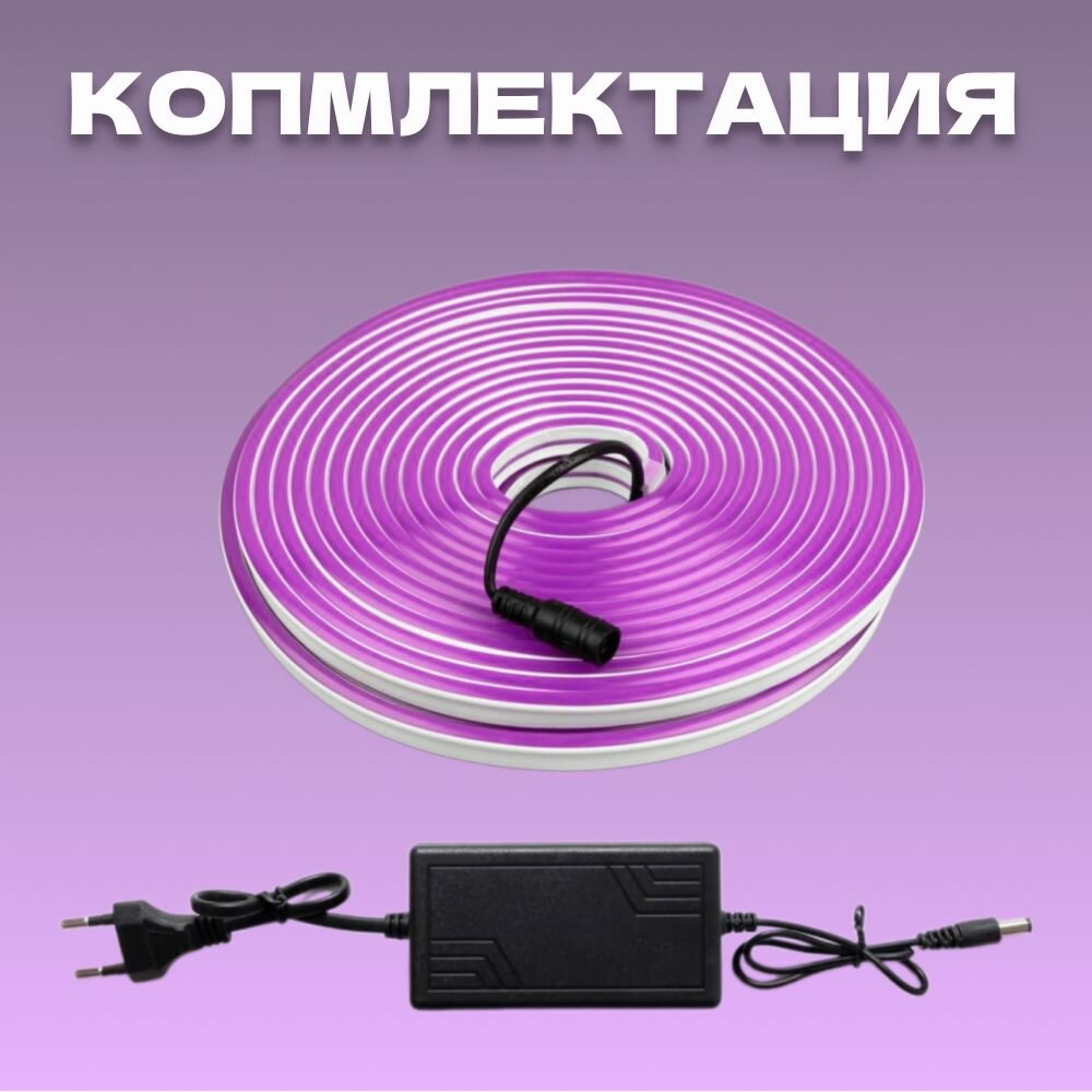Купить Неоновая светодиодная лента PJ Neon 5 метров с адаптером питания, 6х12, 12В, 9.6Вт, IP67, 120 LED/метр, фиолетовый