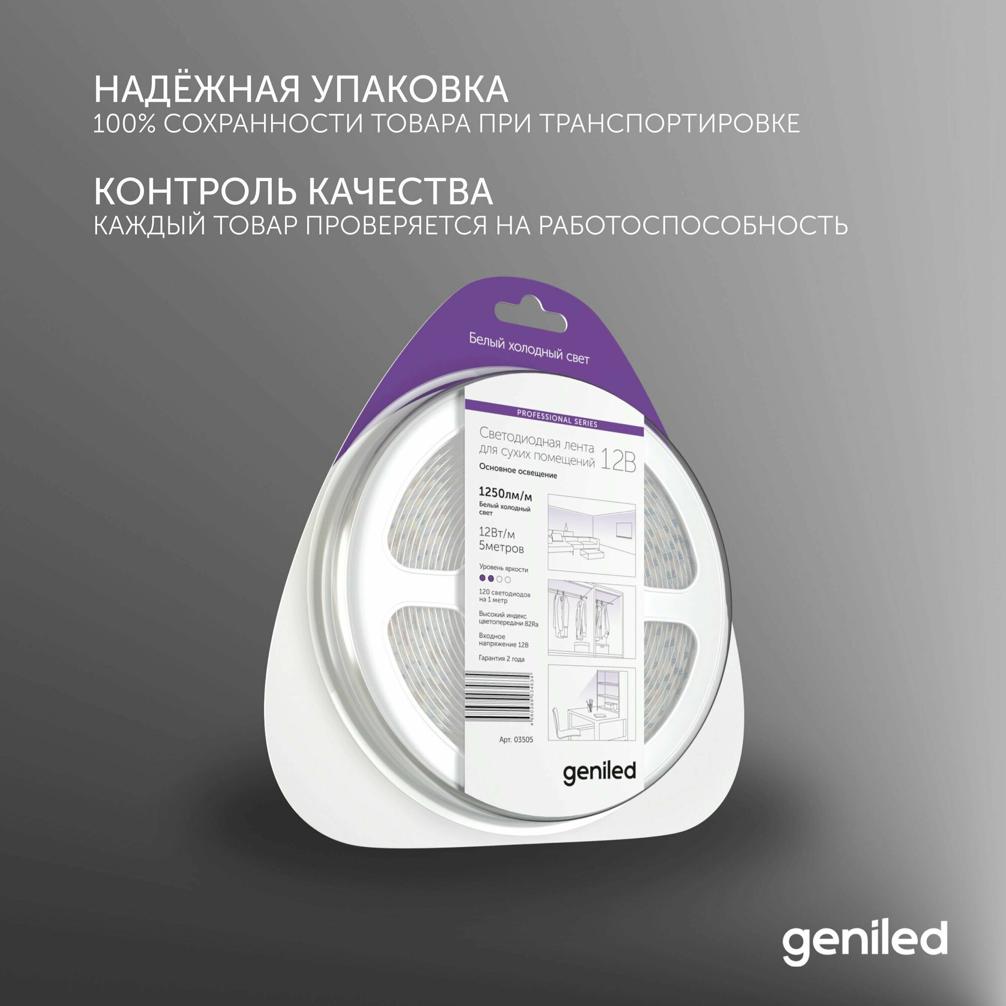 Ниже Вы можете прочитать отзывы на Светодиодная лента, подсветка Geniled - для комнаты, в гардероб, на кухню - Холодный белый свет / GL-120SMD2835 / 1250 Лм/м / 12В / длина - 5м / B - 8 мм / W - 12Вт / 6500 К / IP33, ознакомится с подробными характеристиками, посмотреть интересные обзоры и фотографии на Светодиодная лента, подсветка Geniled - для комнаты, в гардероб, на кухню - Холодный белый свет / GL-120SMD2835 / 1250 Лм/м / 12В / длина - 5м / B - 8 мм / W - 12Вт / 6500 К / IP33.