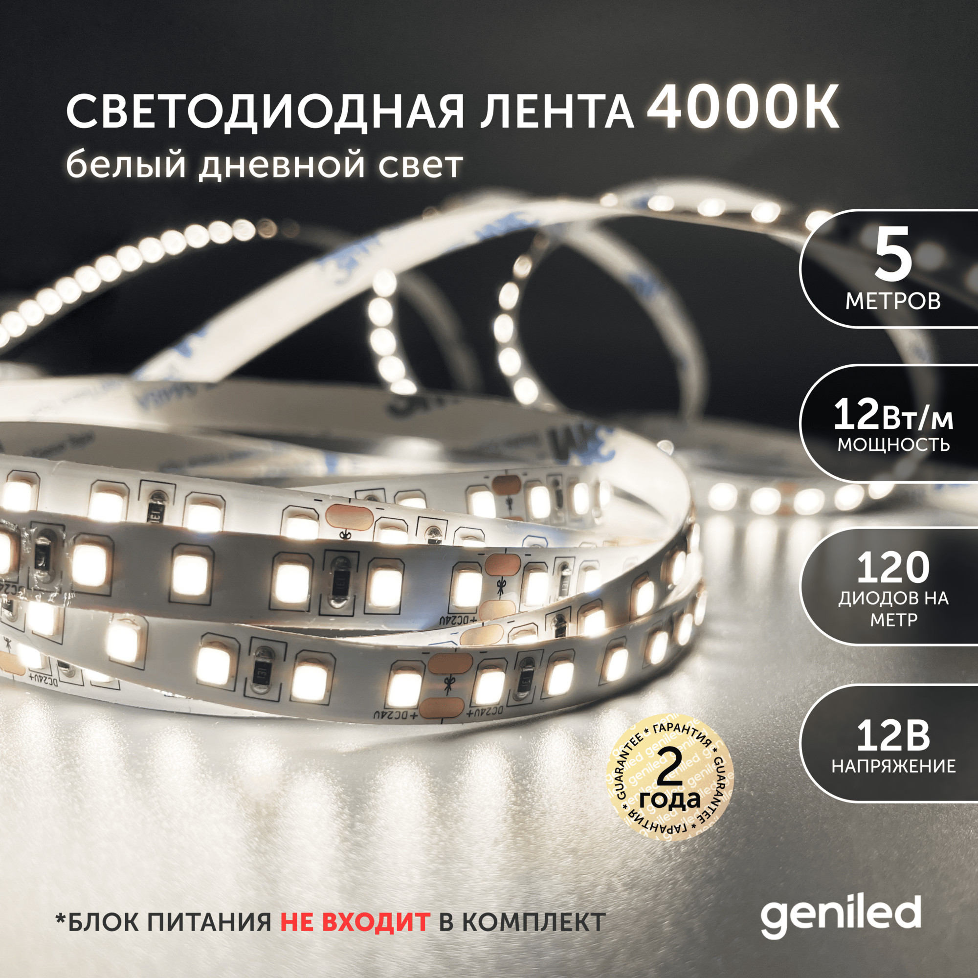 Светодиодная лента Geniled 2м 12В 12Вт/м 4000К IP33 нейтральная дневная подсветка 120 led/m 03581