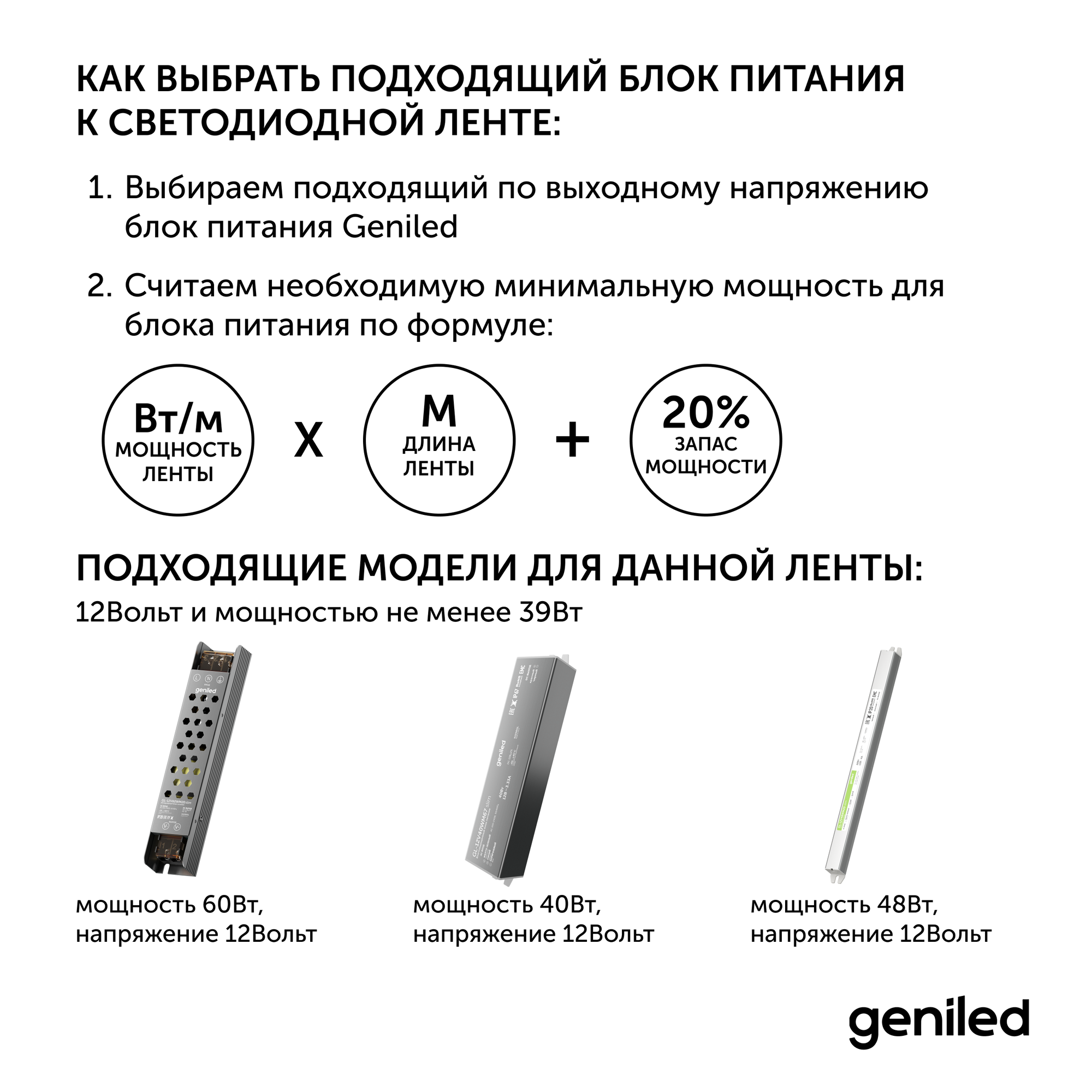 Светодиодная лента Geniled 2м 12В 12Вт/м 4000К IP33 нейтральная дневная подсветка 120 led/m 03581