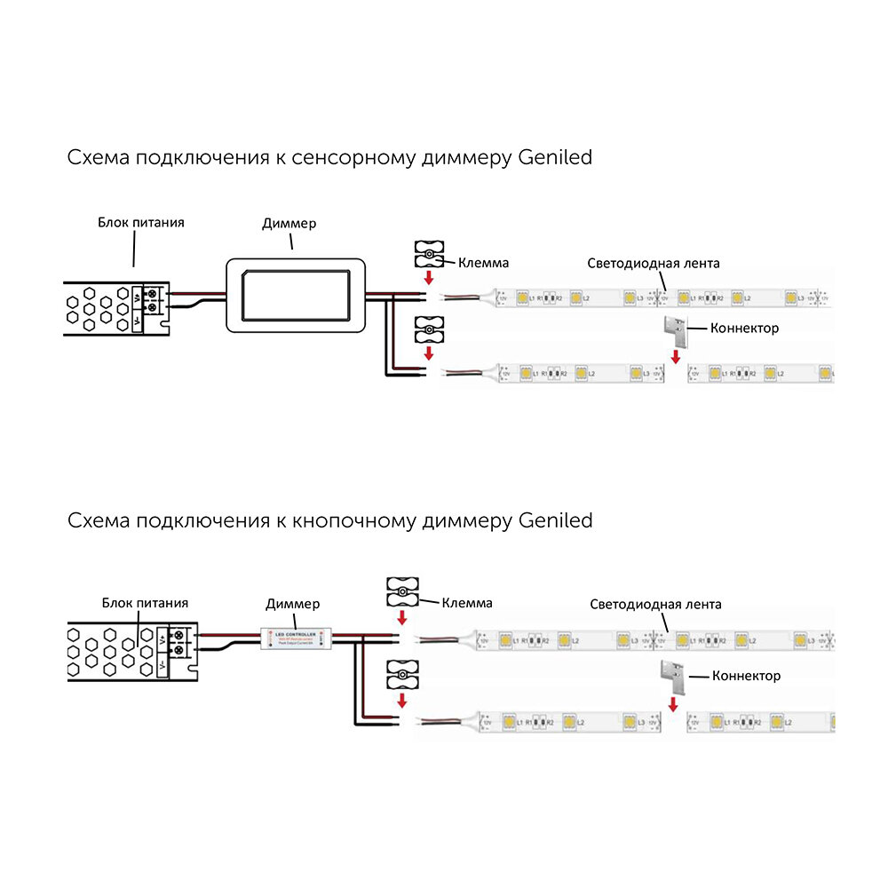 Светодиодная лента, подсветка Geniled - для комнаты, в гардероб, на кухню - Комбинированый свет / GL-120SMD2835 / 1180 Лм/м / 12В / Длина - 5м / B - 8 мм / W - 12Вт / 6500 К / IP33
