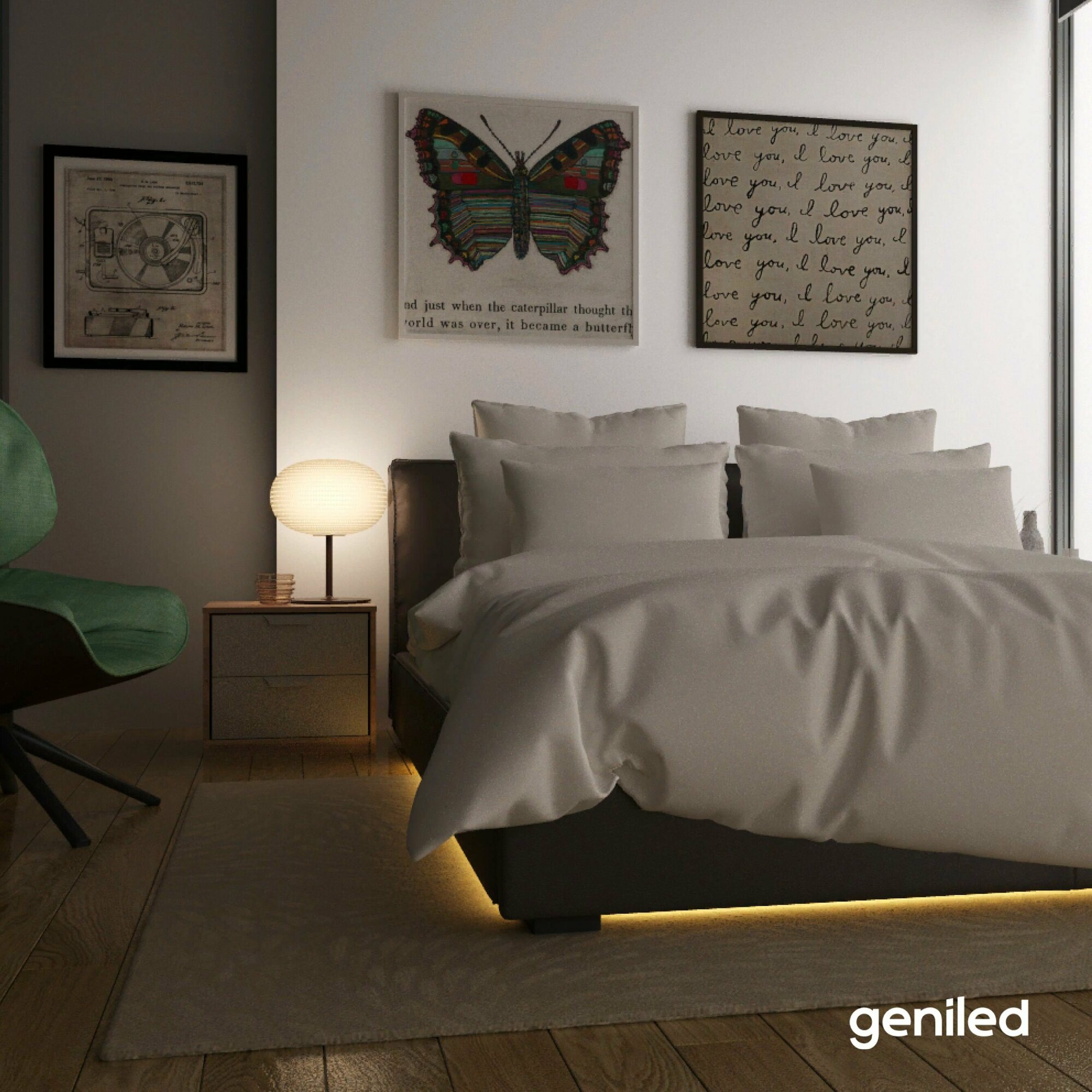 Светодиодная лента, подсветка Geniled - для комнаты, в гардероб, на кухню - Теплый белый свет / GL-180SMD2835 / 1500 Лм/м / 12В / Длина - 2м / B - 10 мм / W - 16 вт / 3000 К / IP33