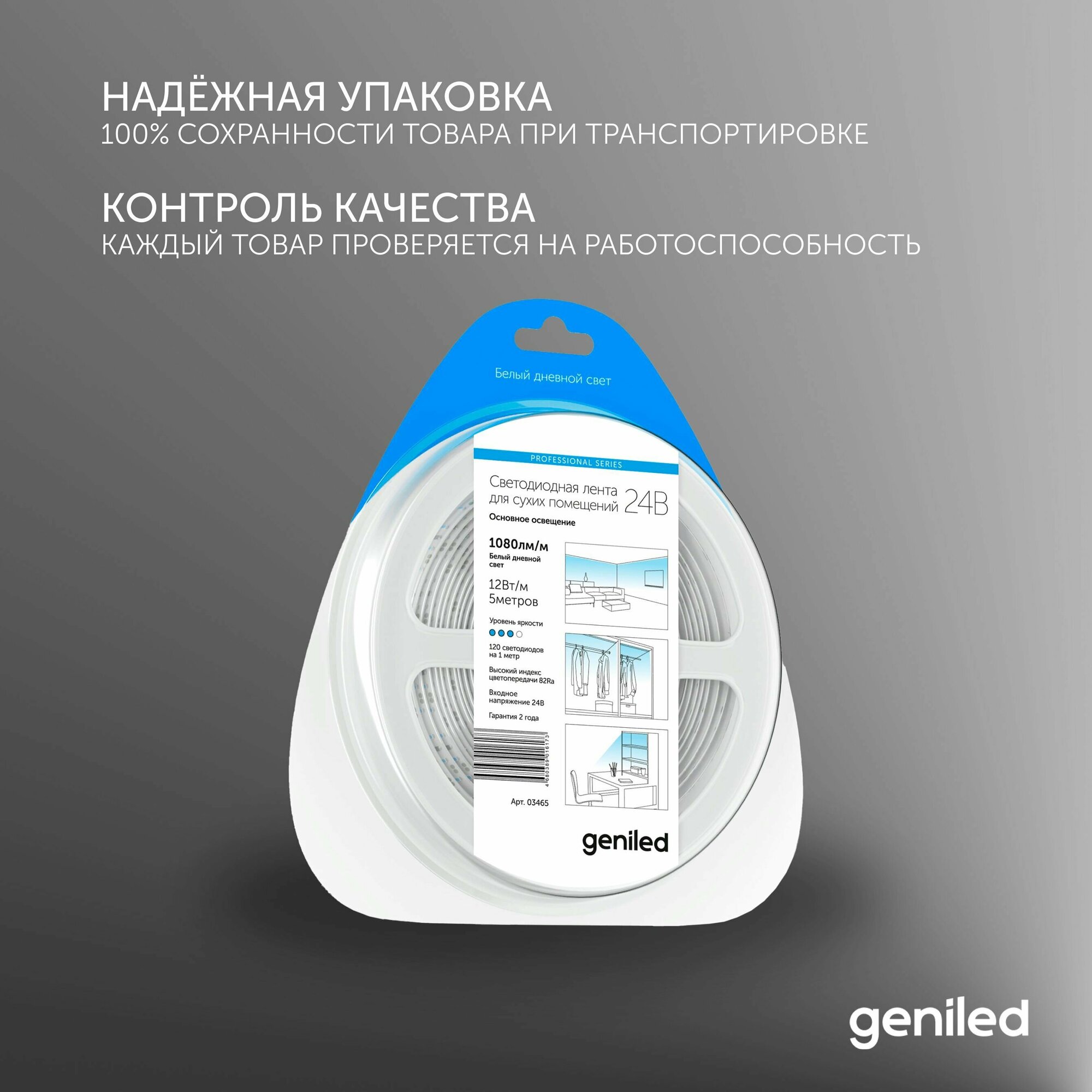Светодиодная лента 3м 24В 12Вт/м 4000К IP33 нейтральная дневная подсветка 120 led/m Geniled