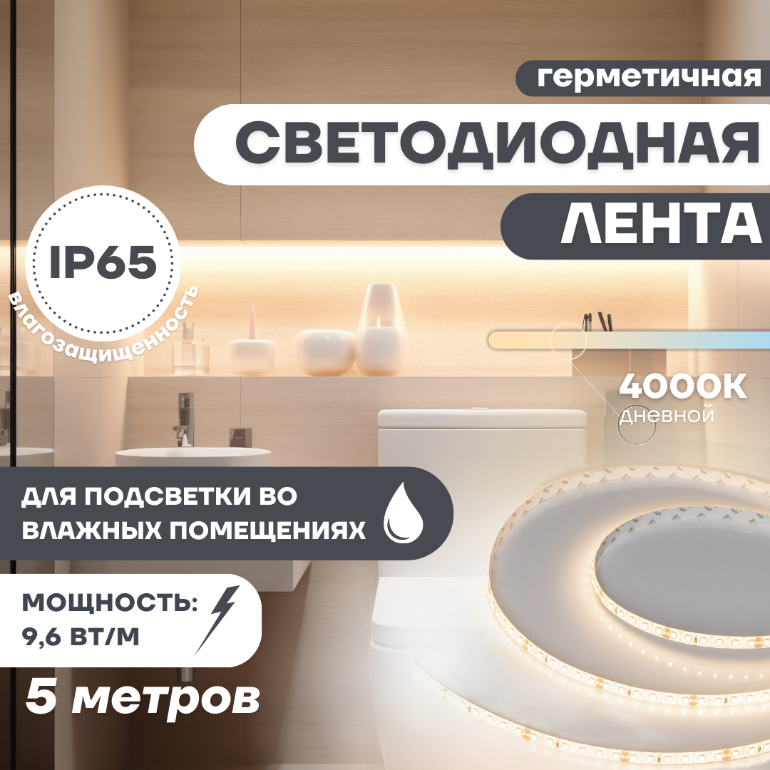 Сохранить015443(2) Лента герметичная RTW-SE-A120-8mm 24V Day4000 (9.6 W/m, IP65, 2835, 5m) (ARL, -) интересное: