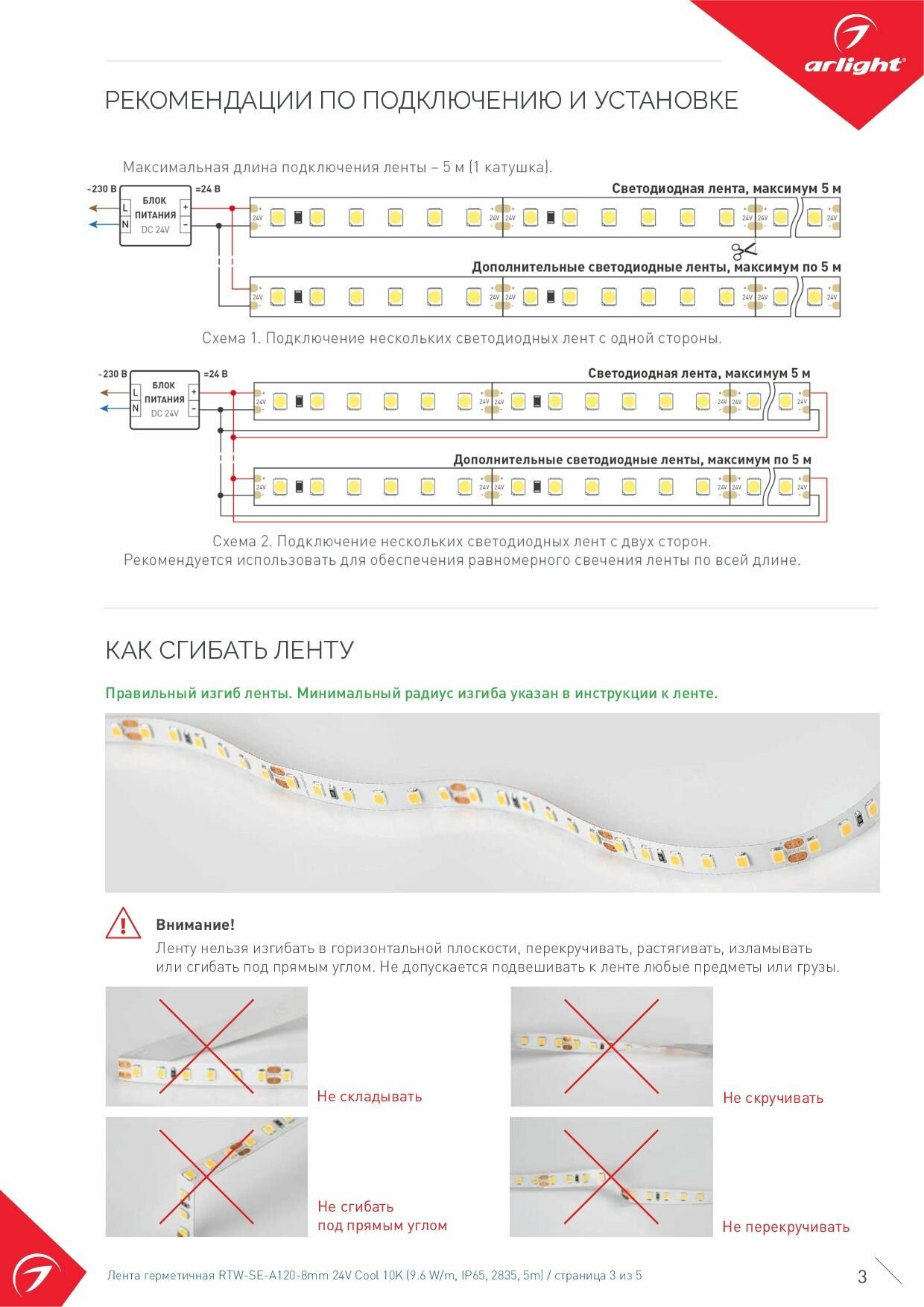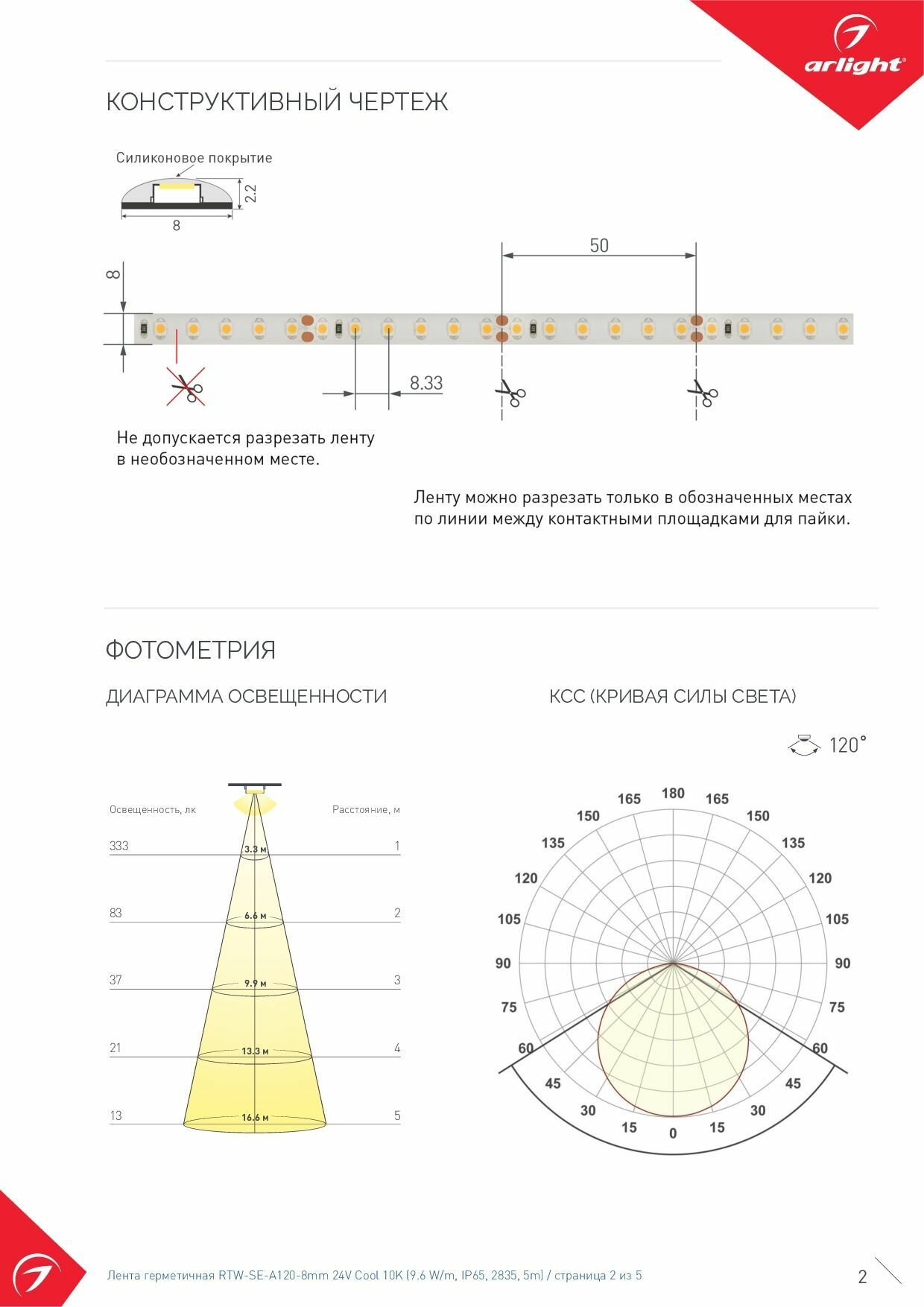 СохранитьArlight Светодиодная лента герметичная RTW-SE-A120-8mm 24V Cool 10K 9.6 0168322 5 м 016832(2) интересное: