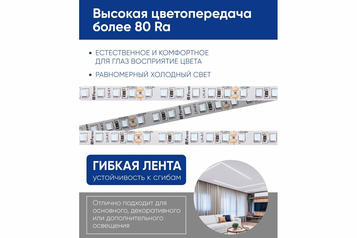 Ниже Вы можете прочитать отзывы на Светодиодная LED лента Feron LS502, 180SMD(2835)/м 16Вт/м 24V 5000*10*1.22мм 6000К, ознакомится с подробными характеристиками, посмотреть интересные обзоры и фотографии на Светодиодная LED лента Feron LS502, 180SMD(2835)/м 16Вт/м 24V 5000*10*1.22мм 6000К.