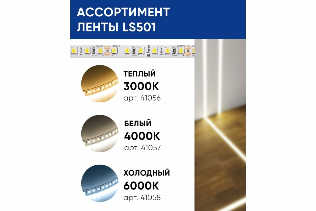 Светодиодная лента Feron 41056 LS501 120SMD(2835)/м 11Вт/м 24V 3000К 5м IP20