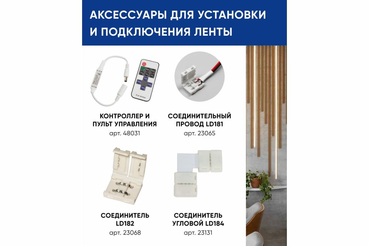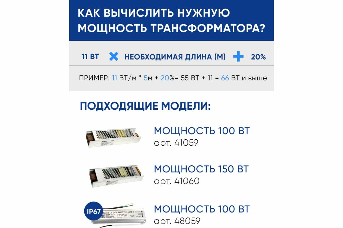 10-21 Комплект светодиодной ленты 12В, 4,8Вт/м, smd3528, 60 д/м, 280 лм/м, IP65, 2,5м, коннектор, БП, т/б