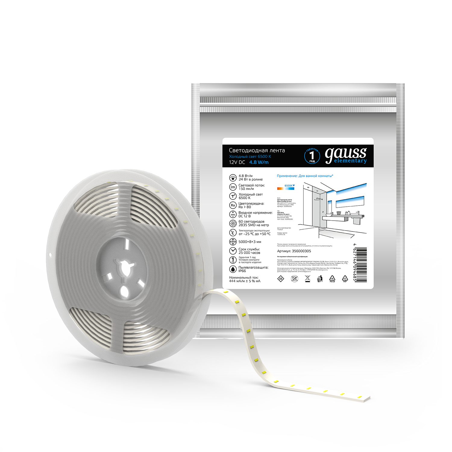 СохранитьСветодиодная лента 2835/60 12V 4.8W 6500K 8mm IP66 5m Gauss Elementary интересное: