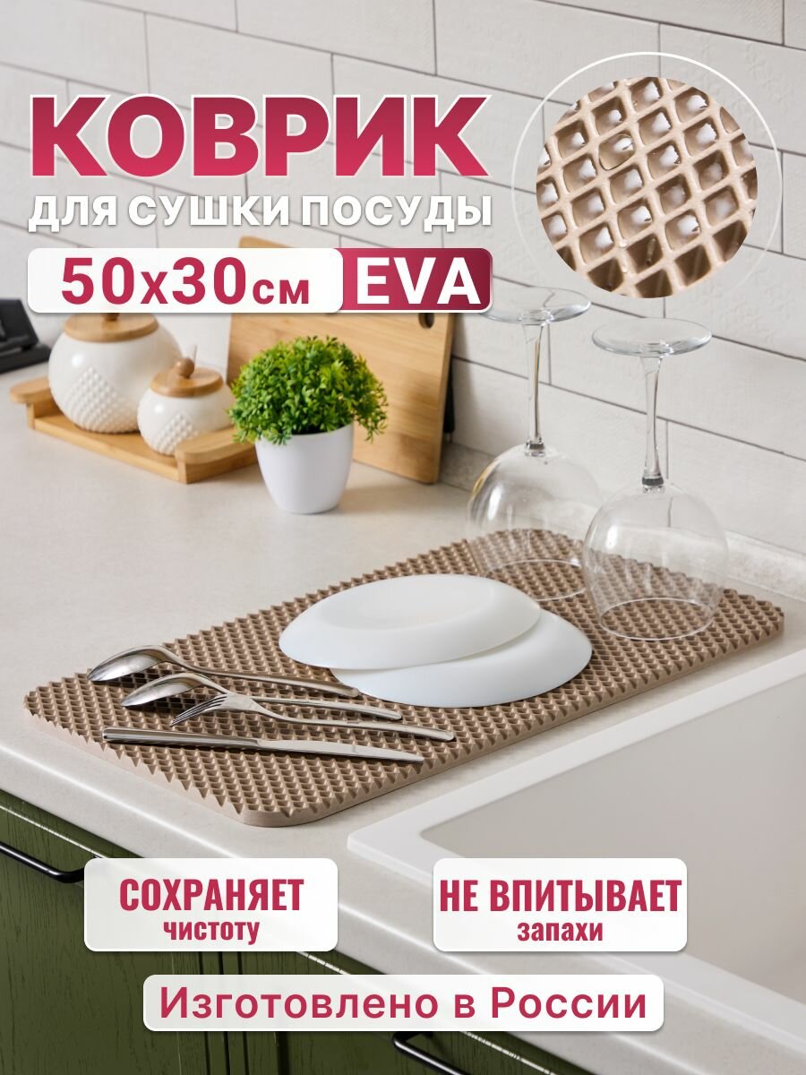 Коврик для сушки посуды, EVA, 50x30 см, бежевый