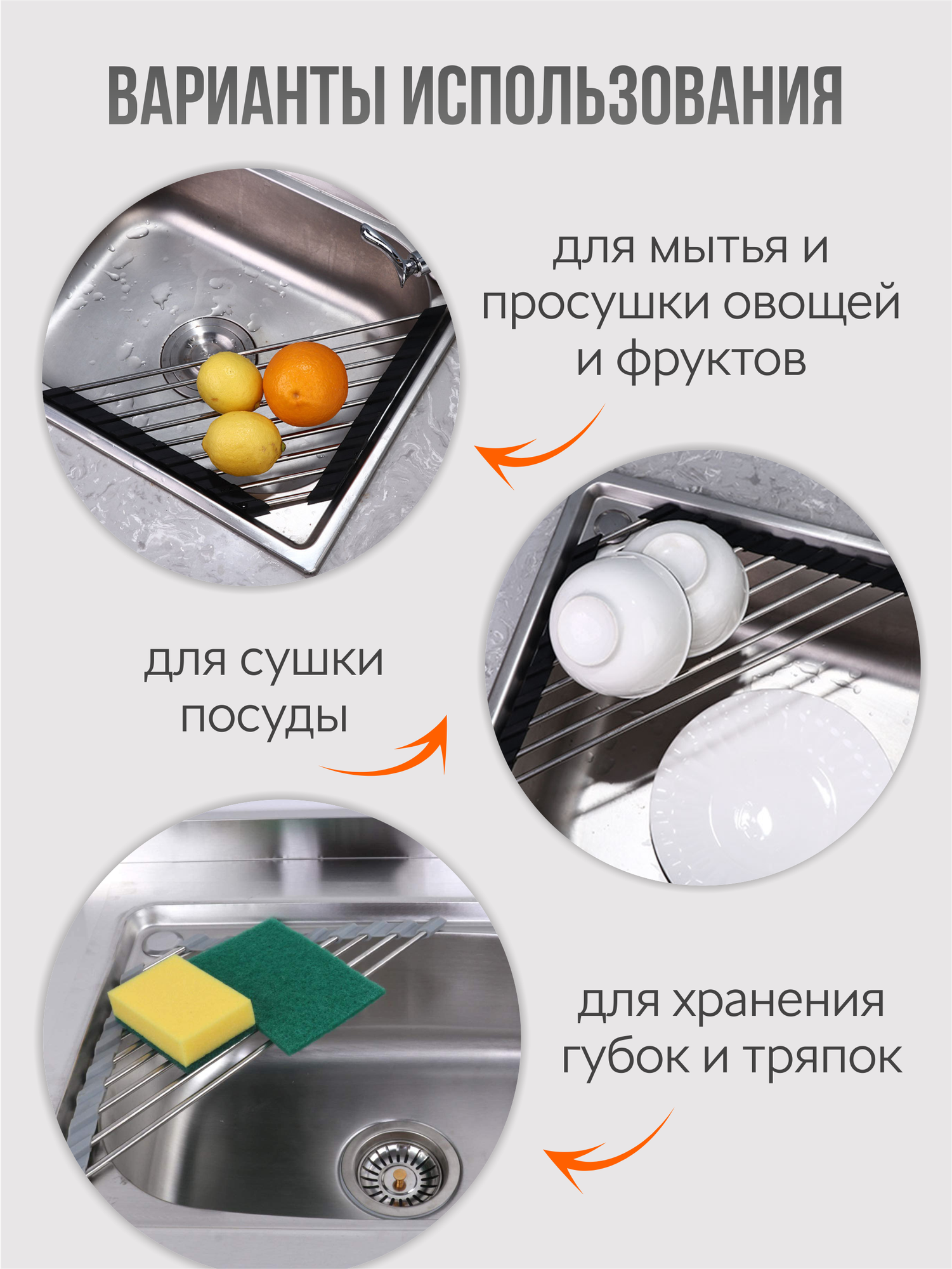 Сушилка решетка угловая складная на раковину, для посуды, для губки, для тряпки, для овощей