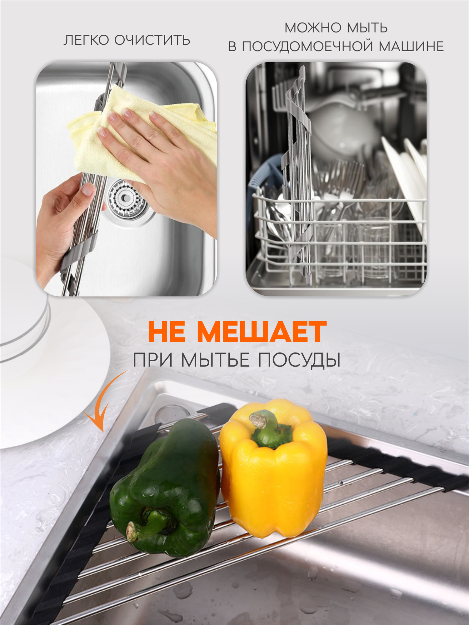 Складная сушилка-решетка на раковину, черный интересное:
