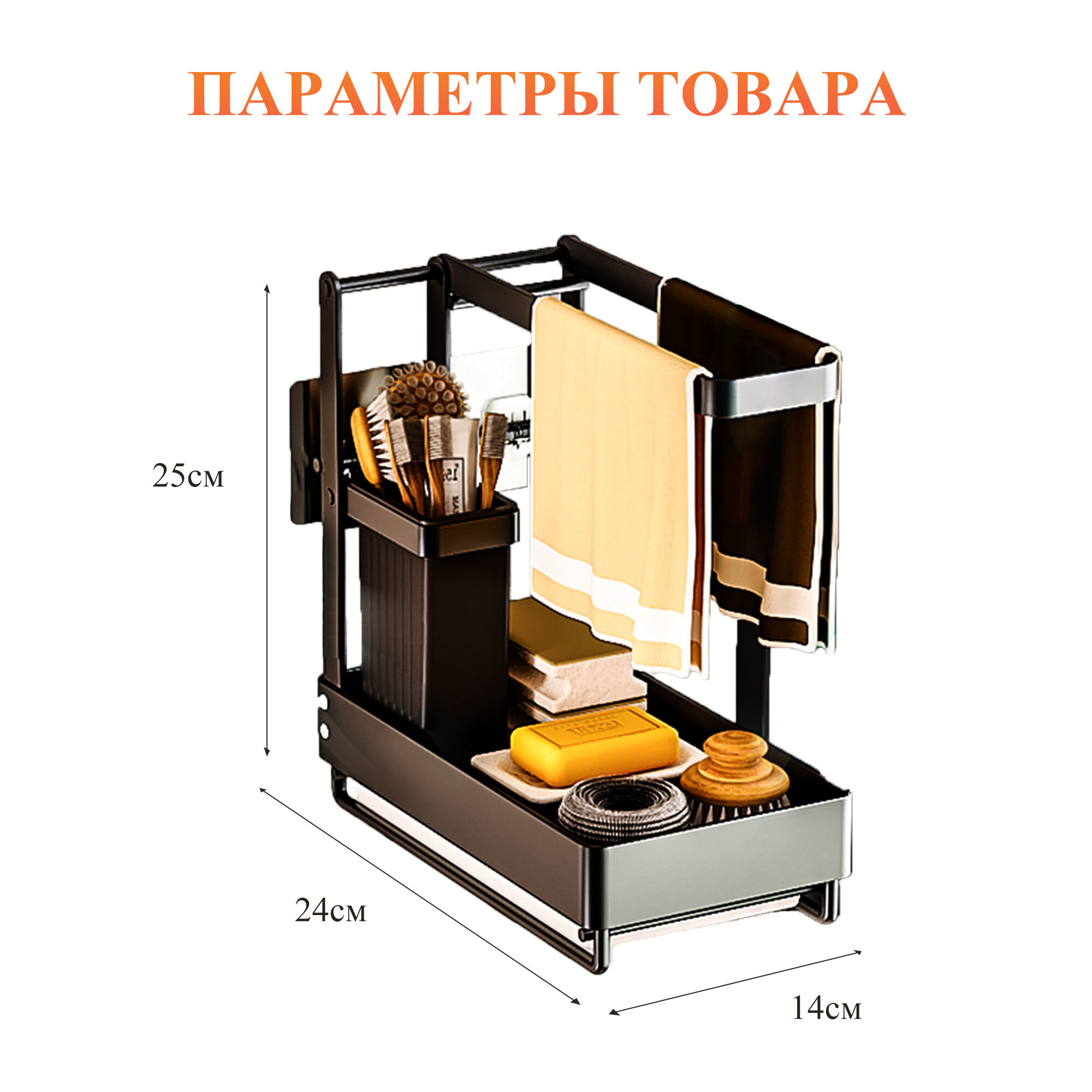 | Дополнительная информация | кухонный органайзер для раковины; кухонный органайзер для мойки; кухонный держатель для раковины; кухонный держатель для мойки; органайзер для хранения губок, моющих средств, тряпок; держатель для хранения губок, моющих средств, тряпок |