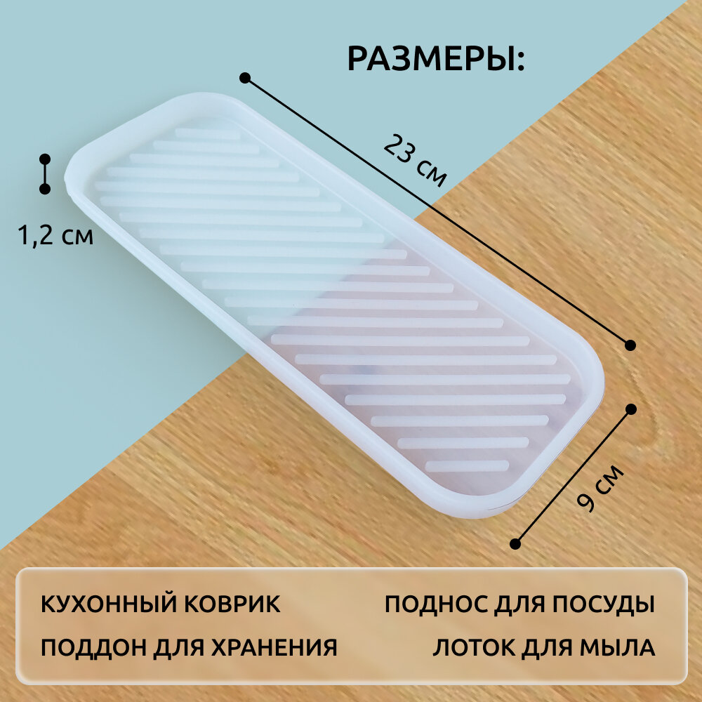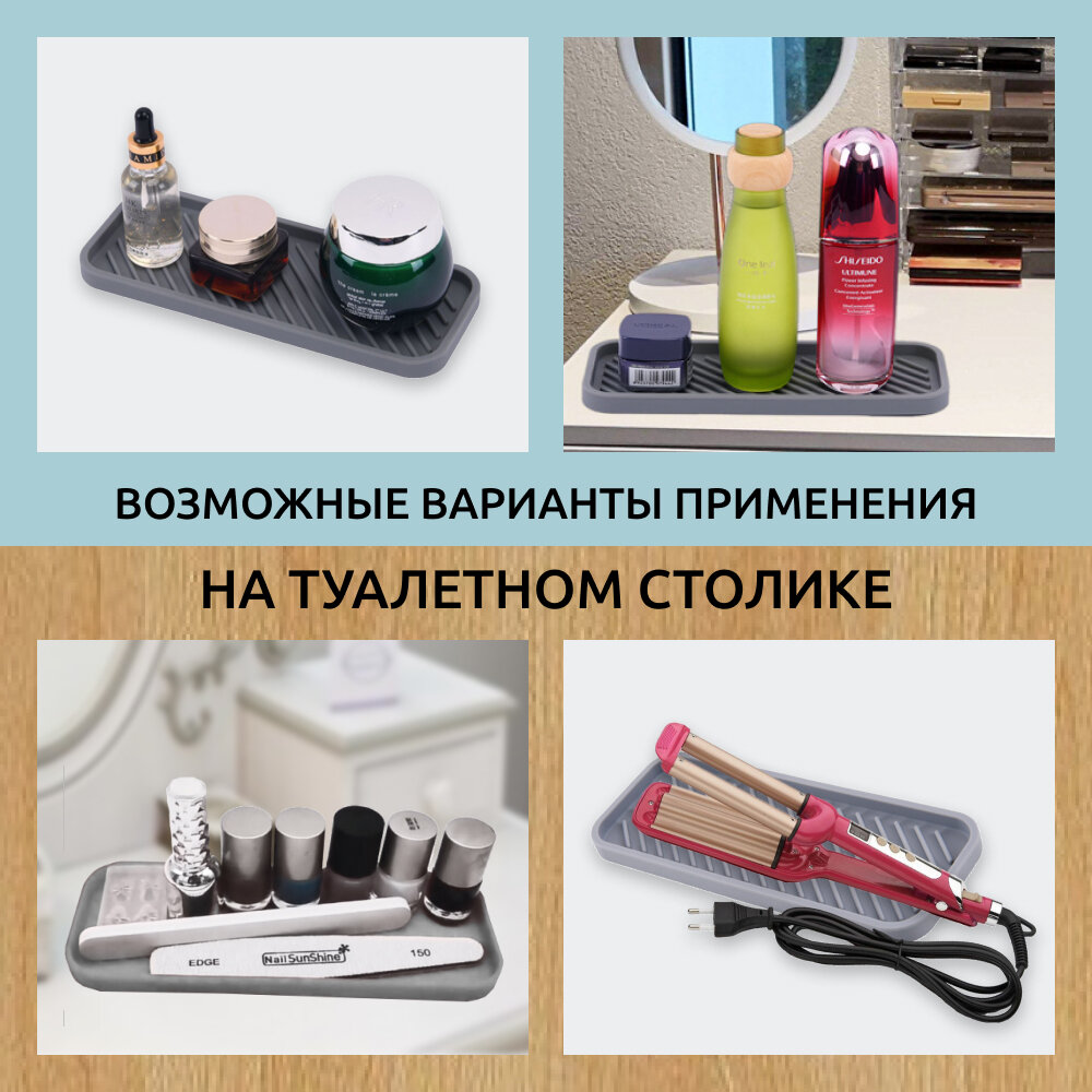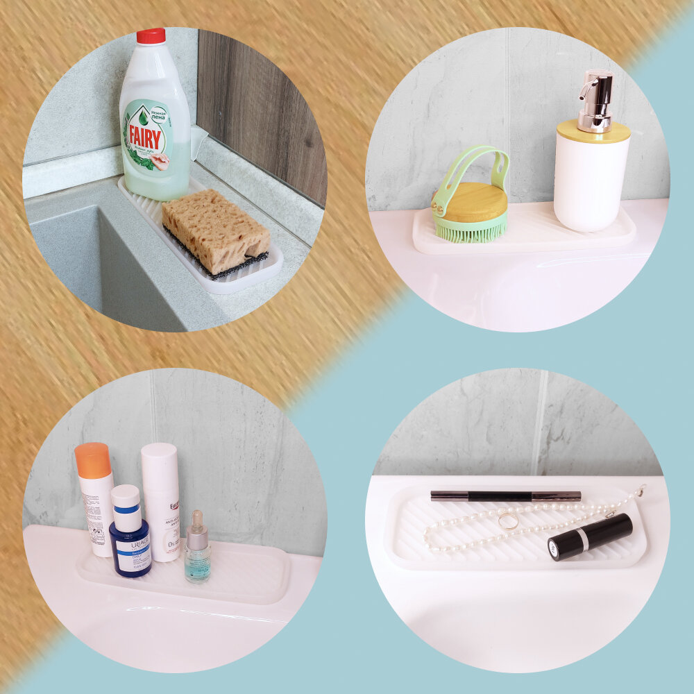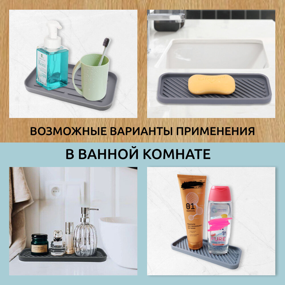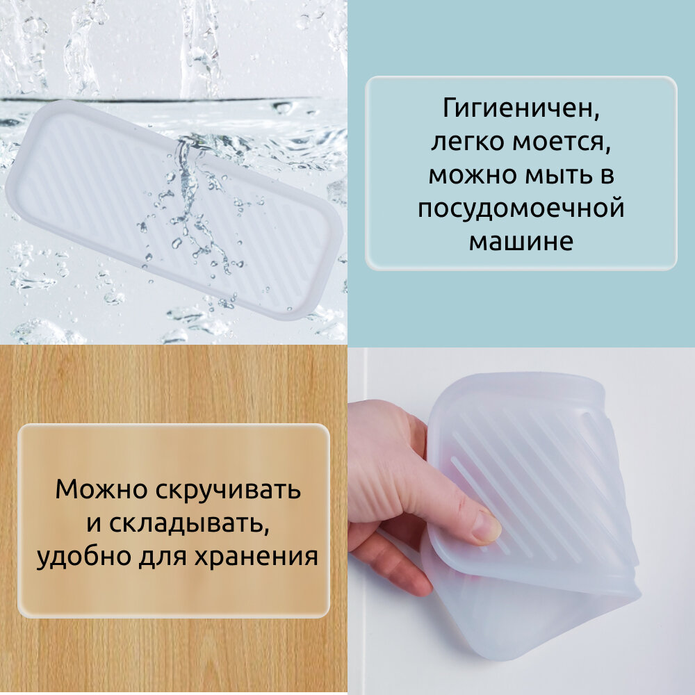 | Дополнительная информация | силиконовый лоток для хранения, силиконновый поддон, органайзер для ванной комнаты, коврик для кухни, узкий коврик, универсальный коврик, защита от брыз и воды |