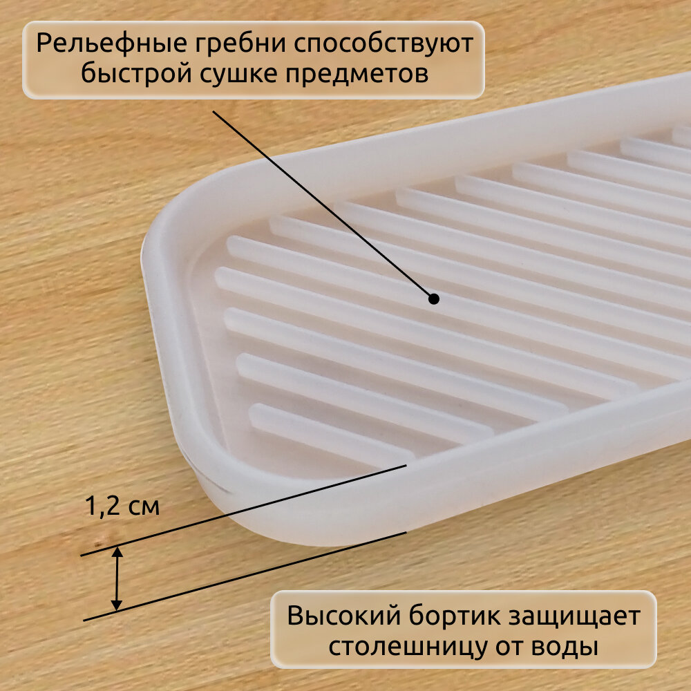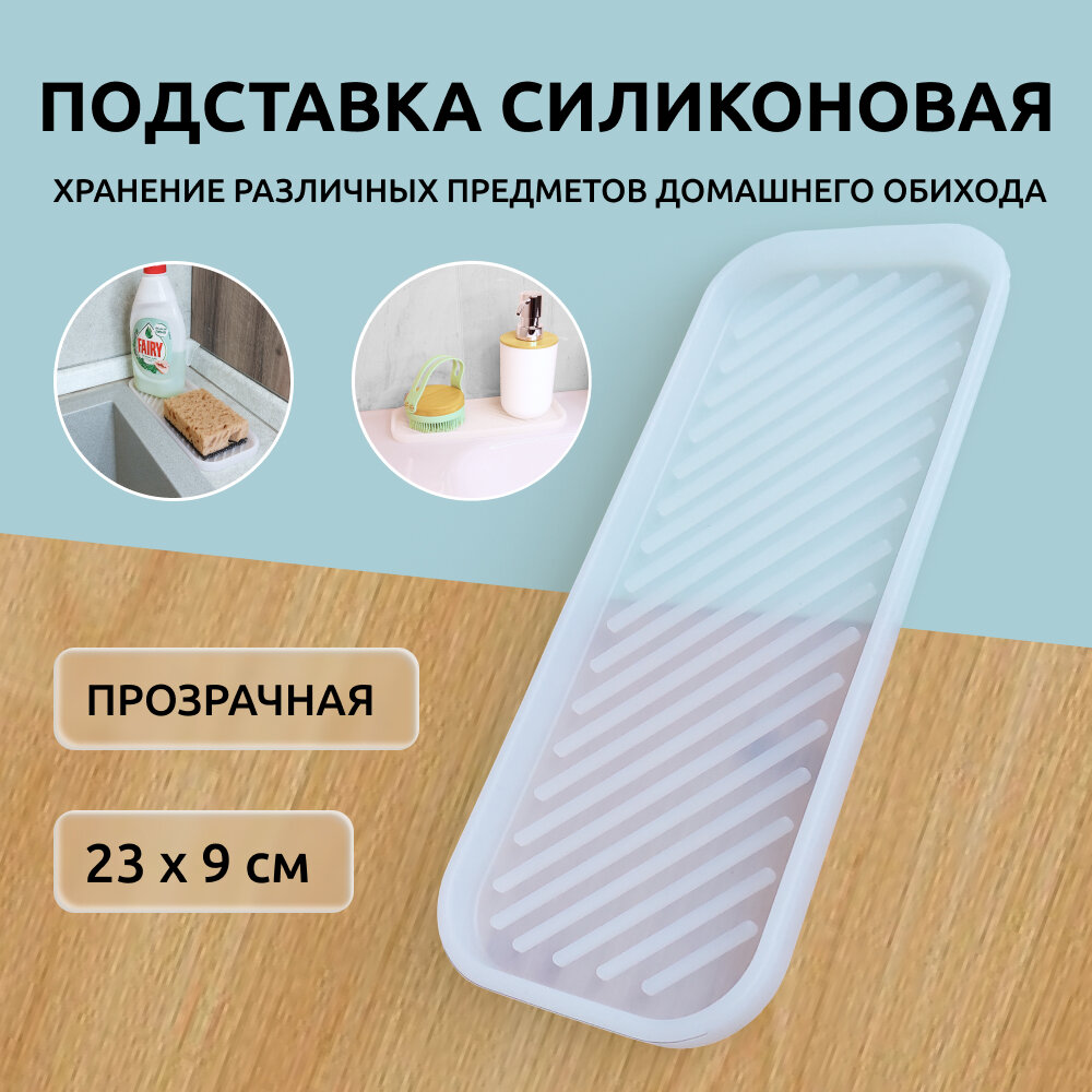 Купить Подставка силиконовая для губки и моющего средства, для ложки 23х9х1,2 см, прозрачная