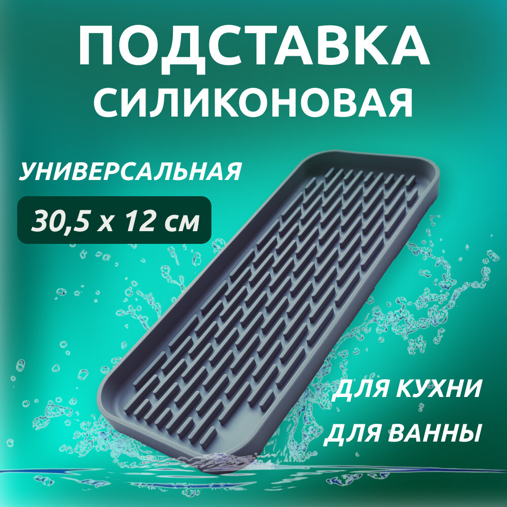 СохранитьСиликоновая подставка для губки и мобщего средства, коврик для сушки посуды 305х120х17 мм серый интересное: