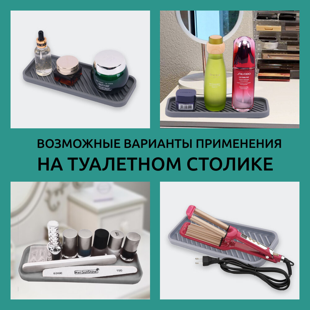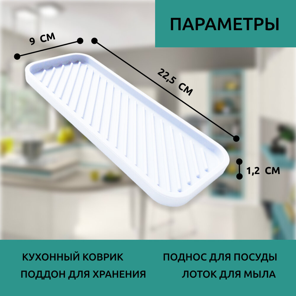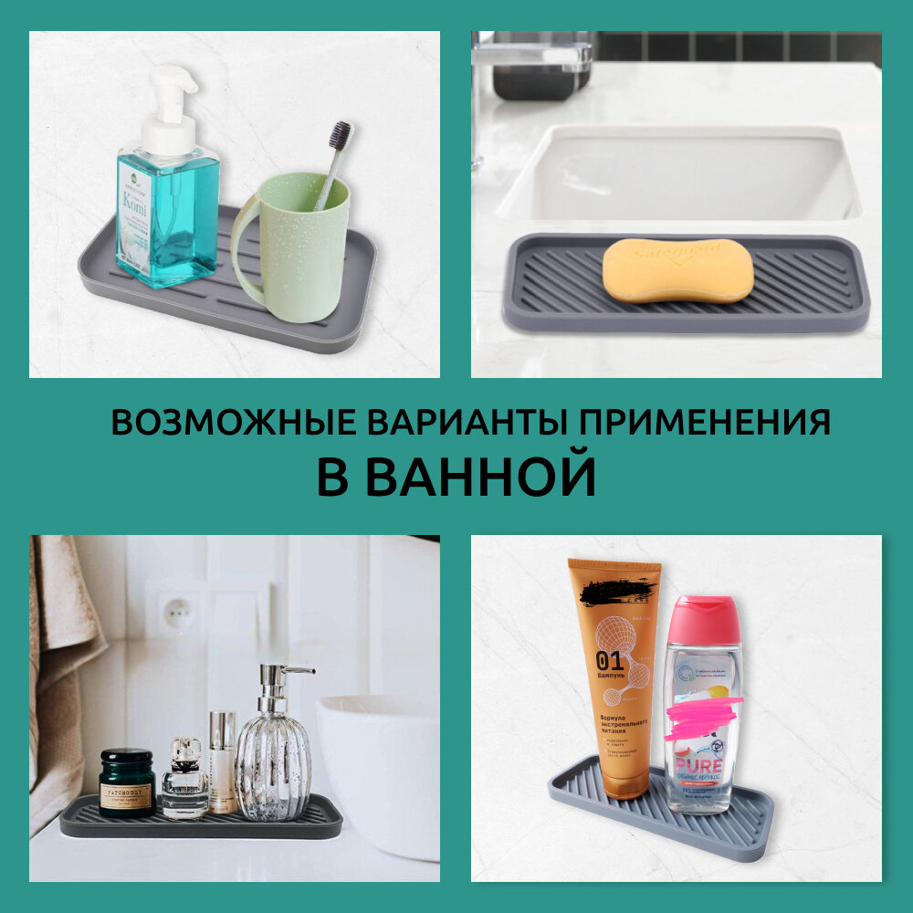 | Дополнительная информация | силиконовый лоток для хранения, силиконновый поддон, органайзер для ванной комнаты, коврик для кухни, узкий коврик, универсальный коврик, защита от брыз и воды |