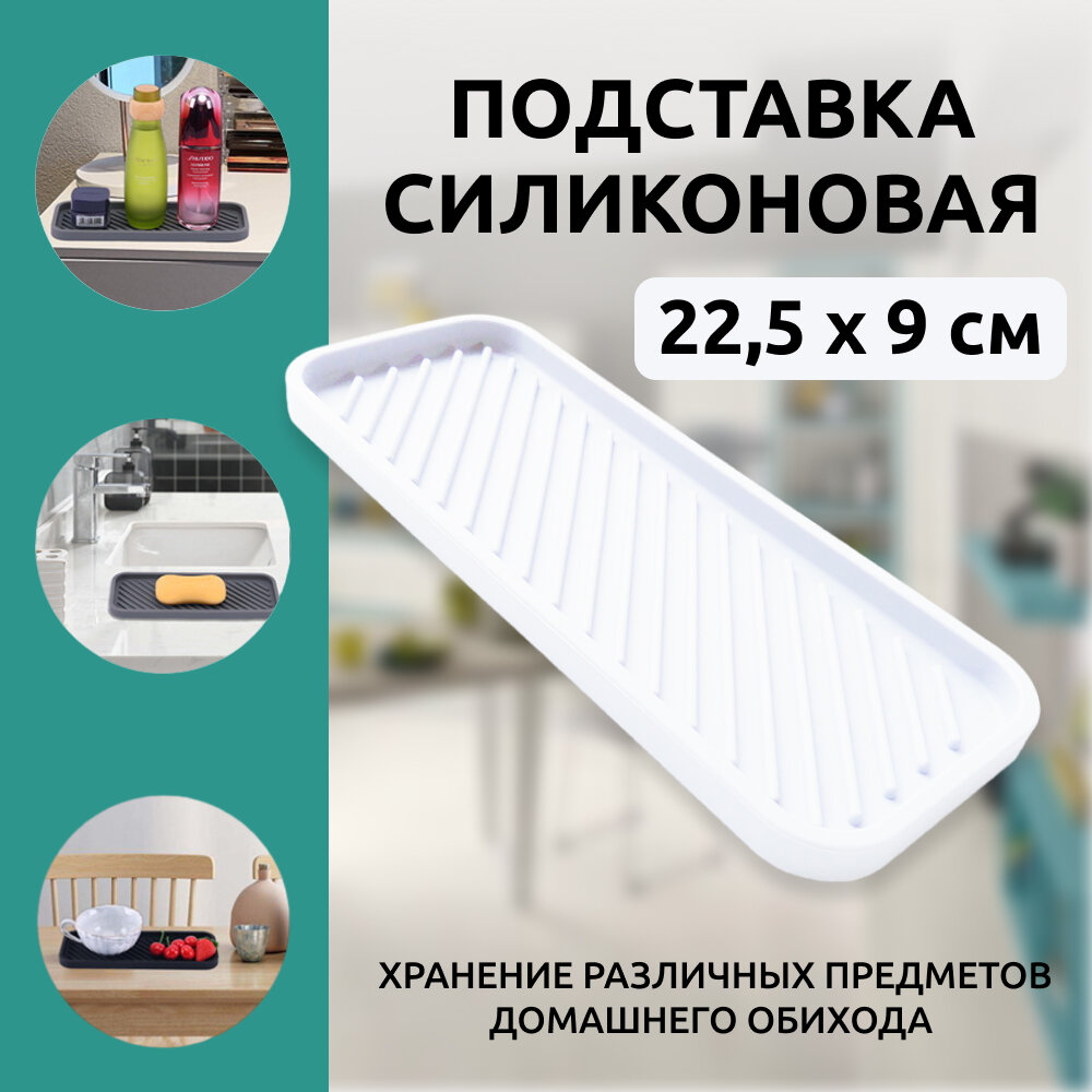 Купить Подставка силиконовая для губки и моющего средства, для ложки 22,5х9х1,2 см, белая