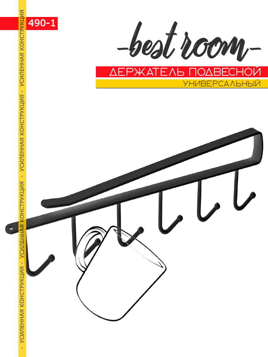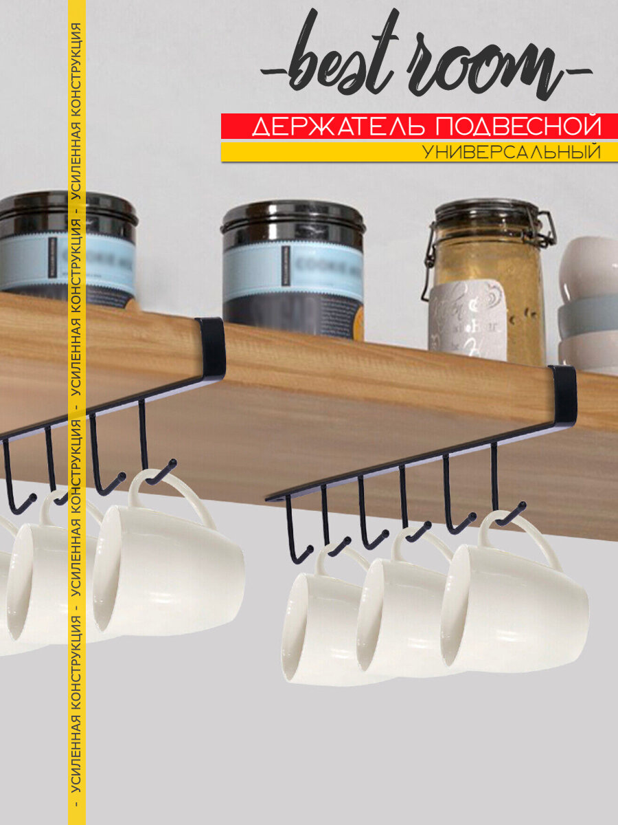 Держатель для бокалов подвесной самоклеящийся черный