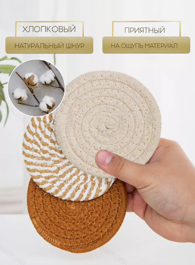 Набор хлопковых подставок под стаканы и чашки, подстаканники 10 штук интересное: