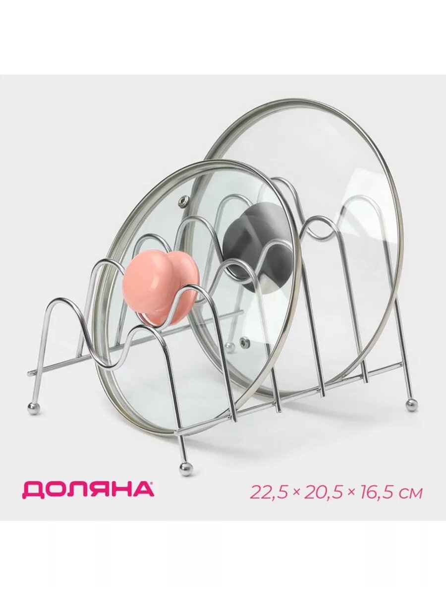 | Дополнительная информация | Подставка для крышек на 5 предметов Доляна, 22,5×20,5×16,5 см, цвет хром |