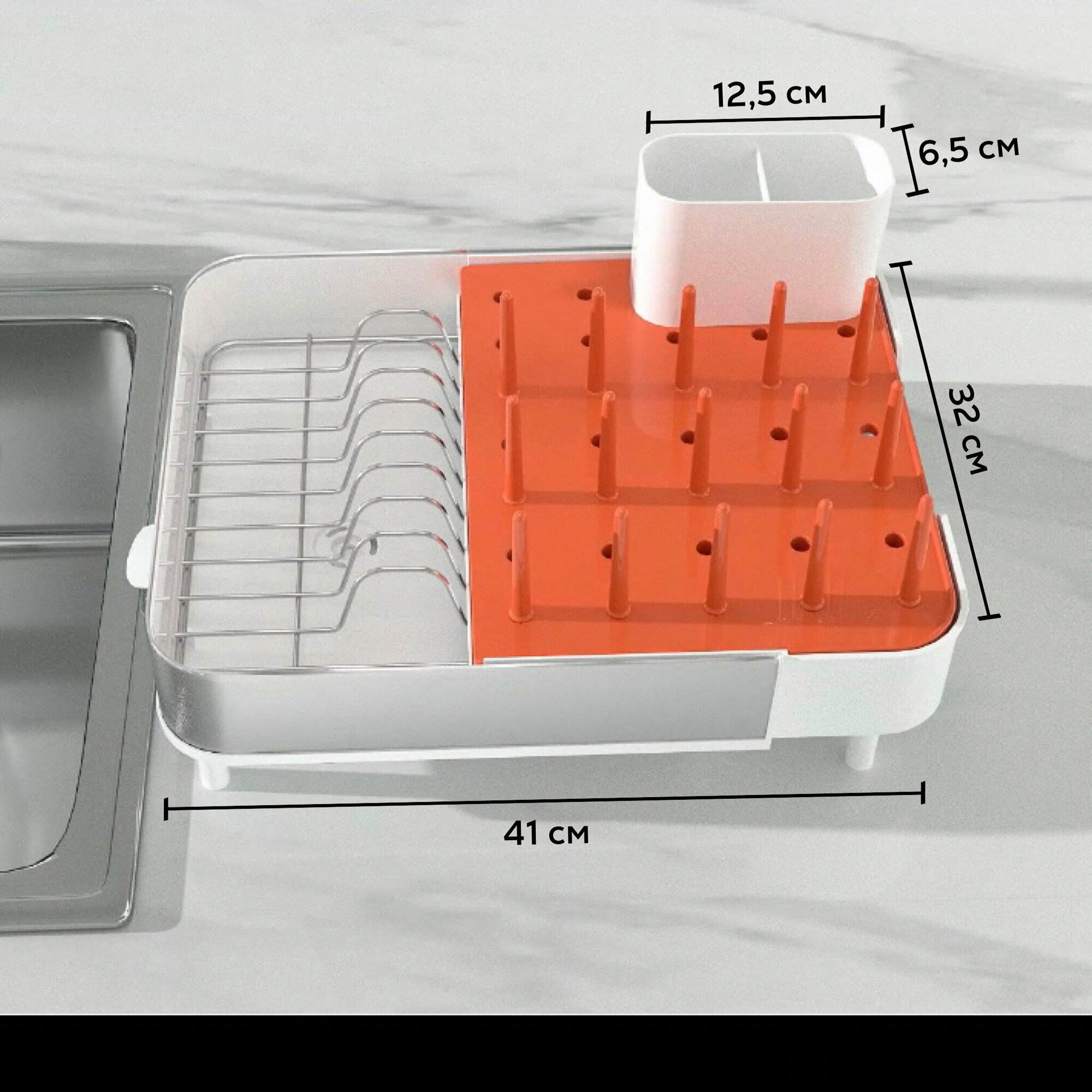 Сушилка для посуды shelf-market настольная white+orange интересное: