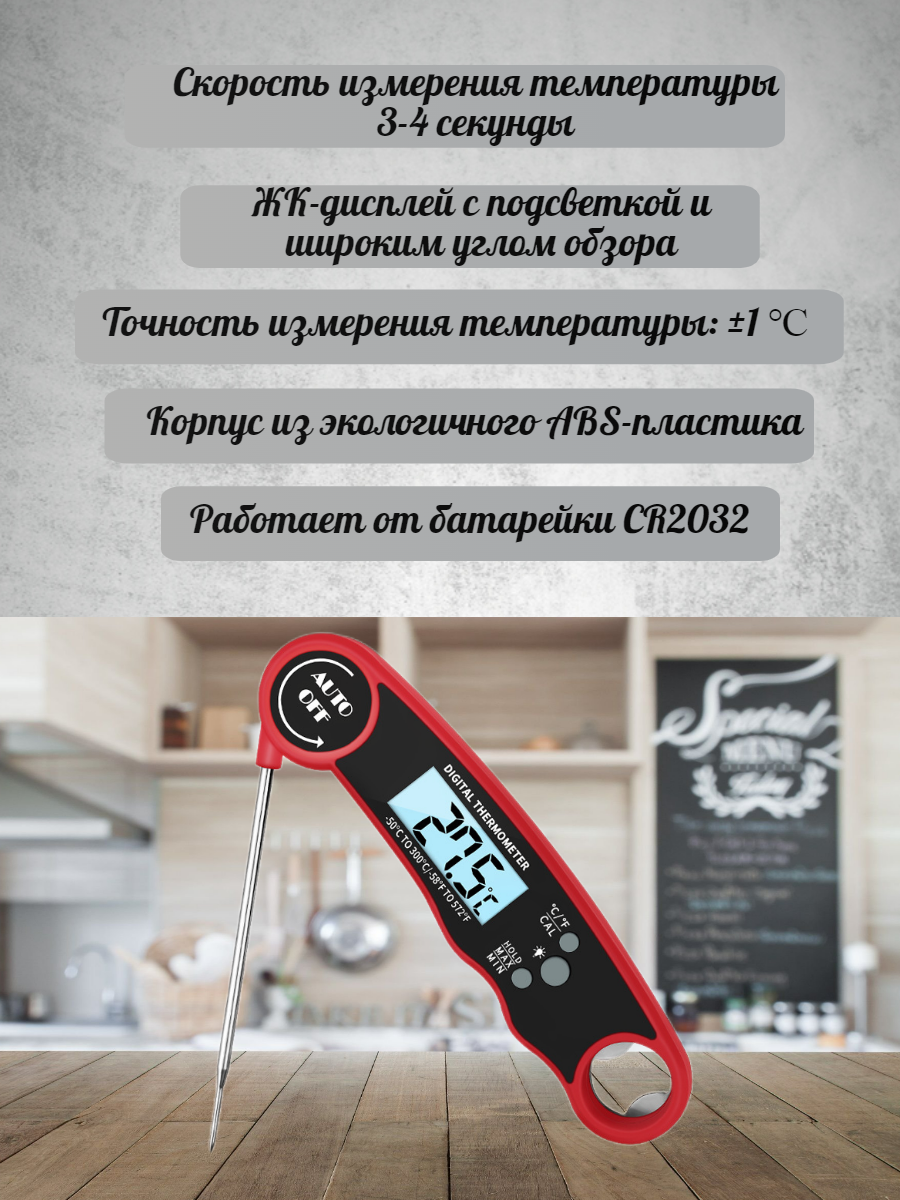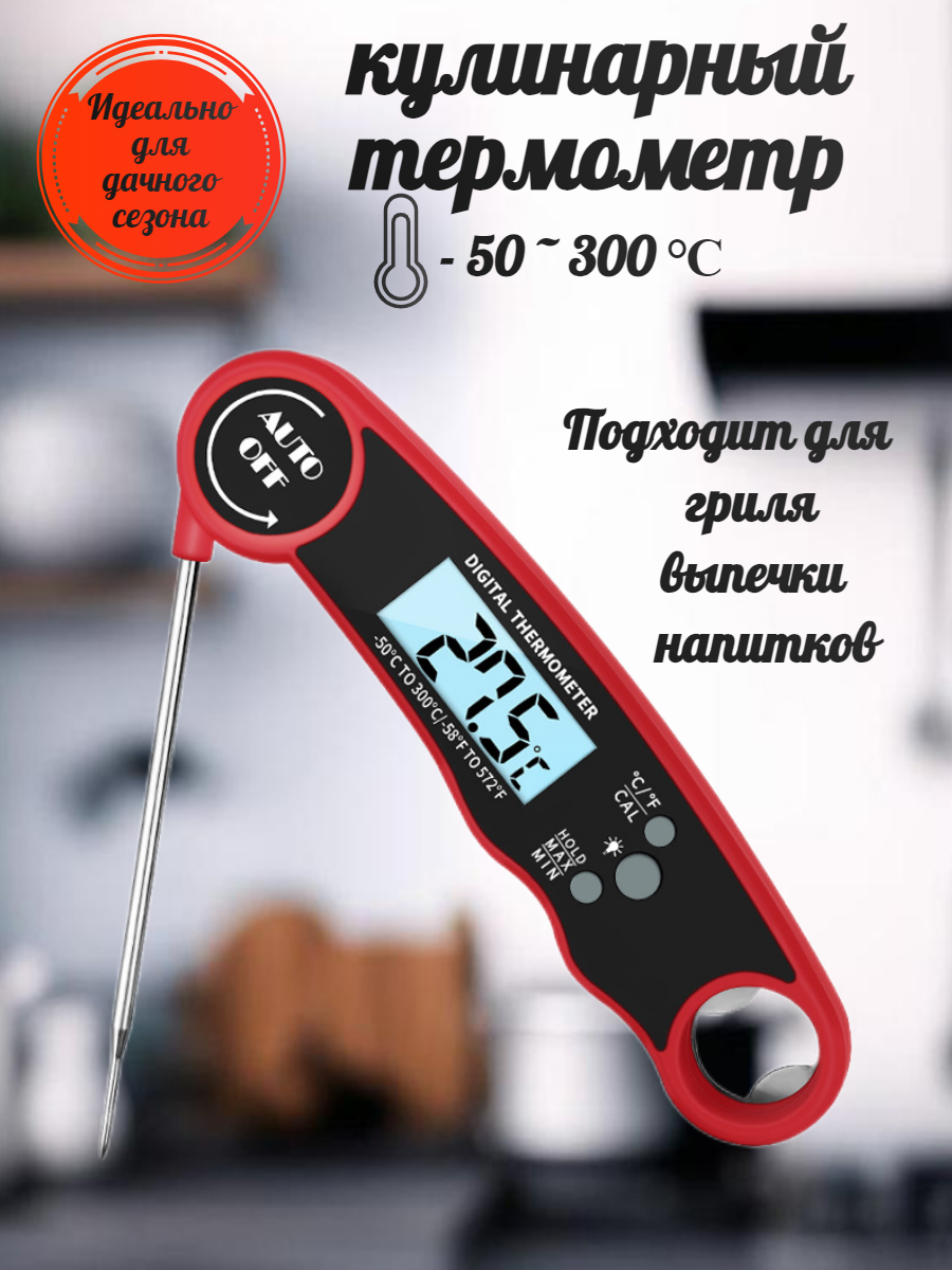 Кулинарный термометр с термощупом для мяса, выпечки, напитков интересное: