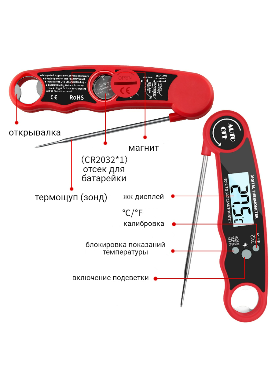 Купить Кулинарный термометр с термощупом для мяса, выпечки, напитков
