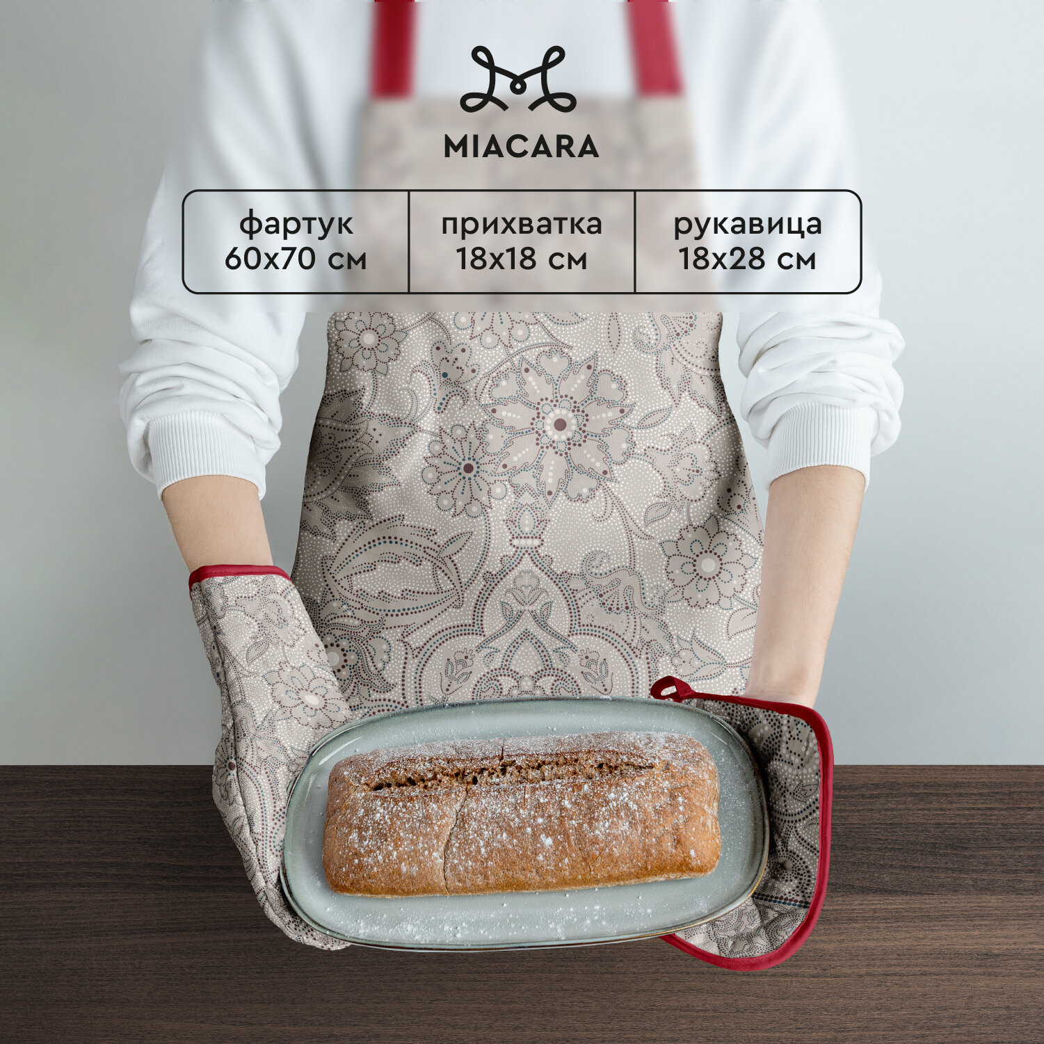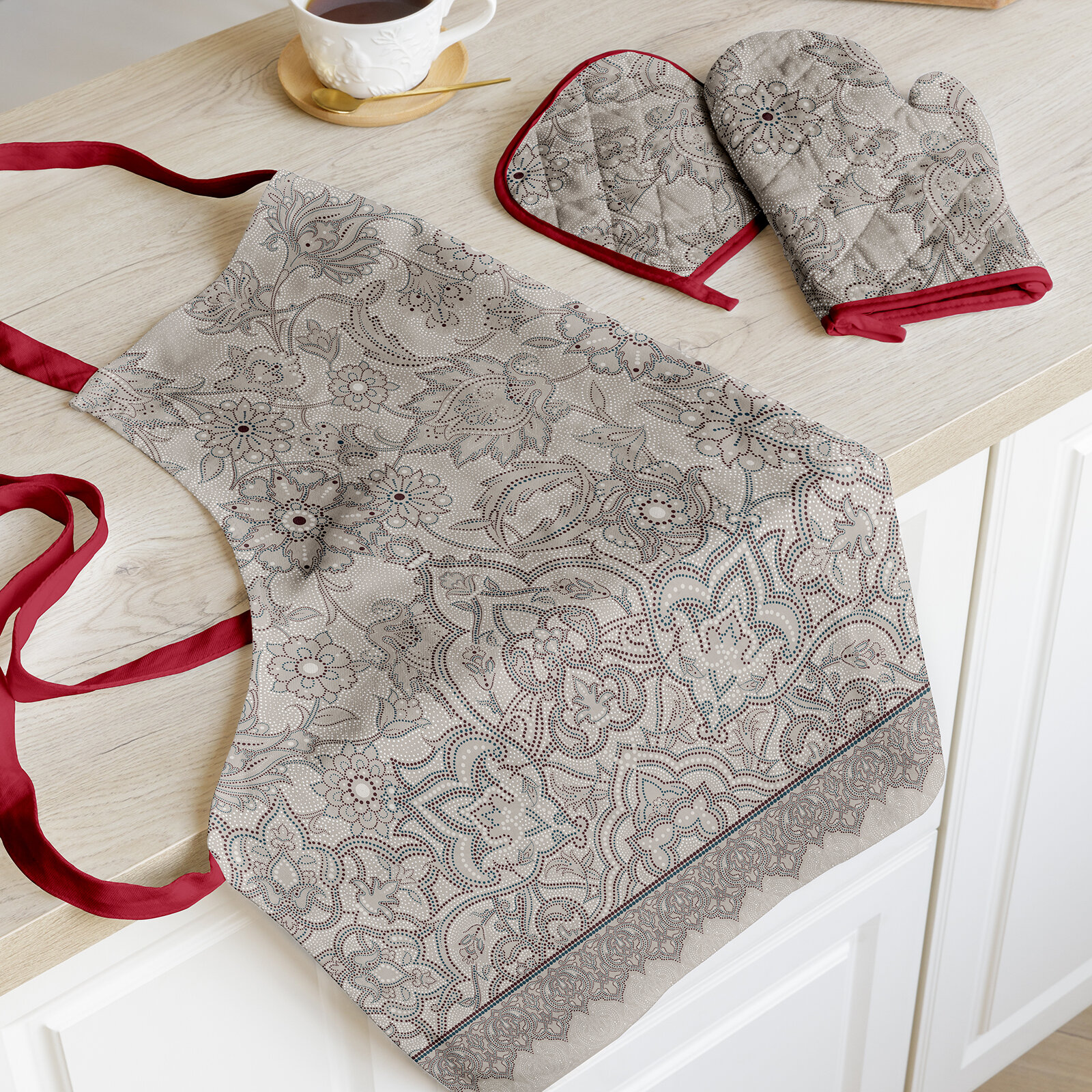 Купить Подарочный набор прихватки для кухни (прихватка 18х18, прихватка-рукавица,18х28, фартук 60х70) "Mia Cara" рис 30300-2 Ожерелье