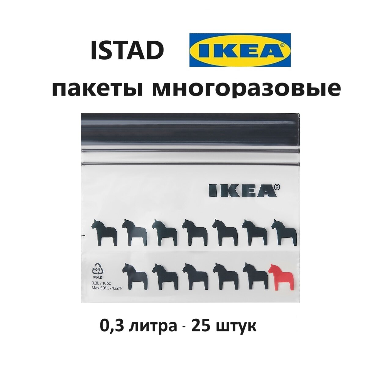 Икеа истад, многоразовый пакет с застежкой, пакет для заморозки IKEA ISTAD, 25 пакетов, 0.3 л