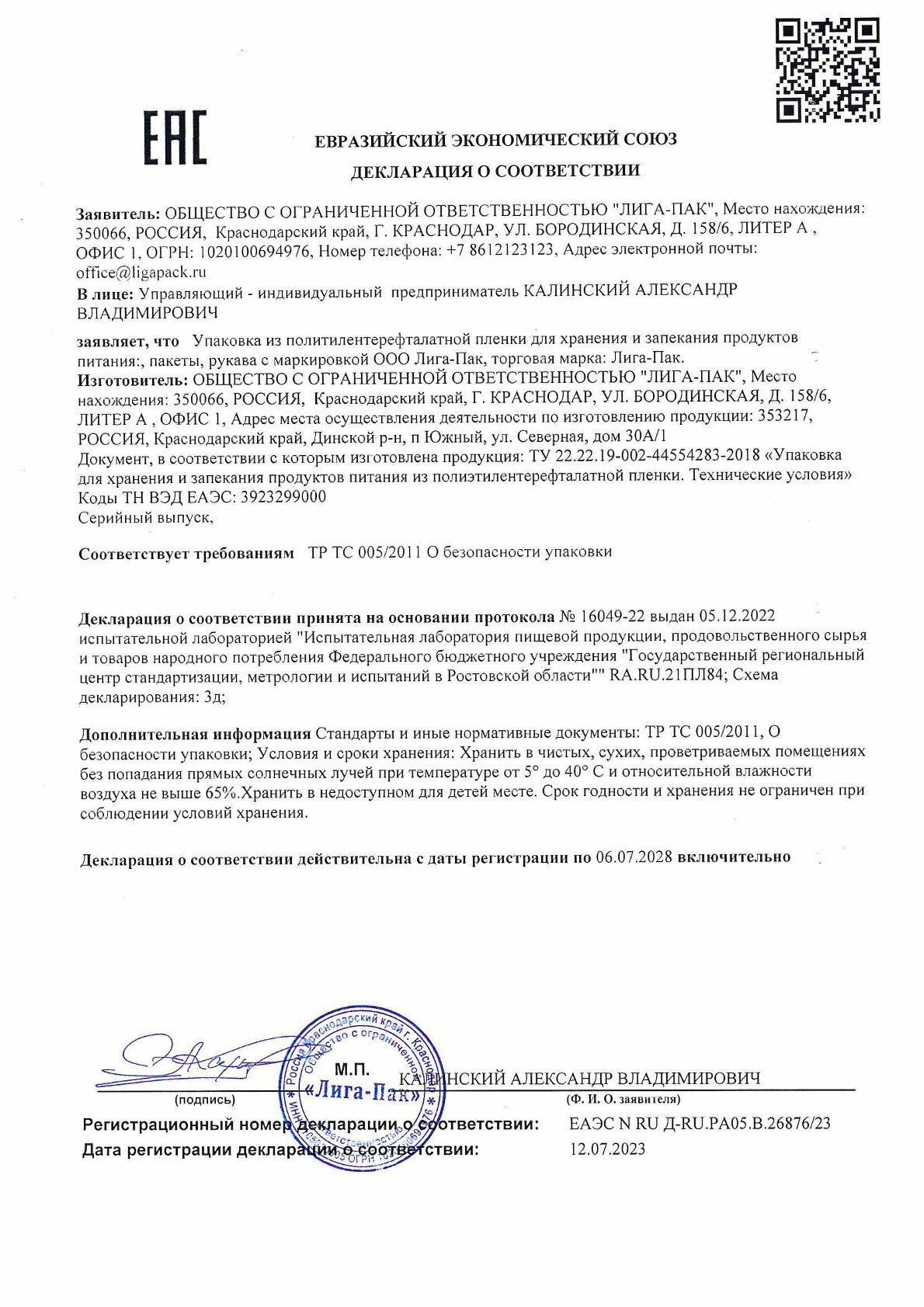 Рукав для запекания в духовке Лига-Пак 30 см х 3 м с завязками / мешок для приготовления интересное: