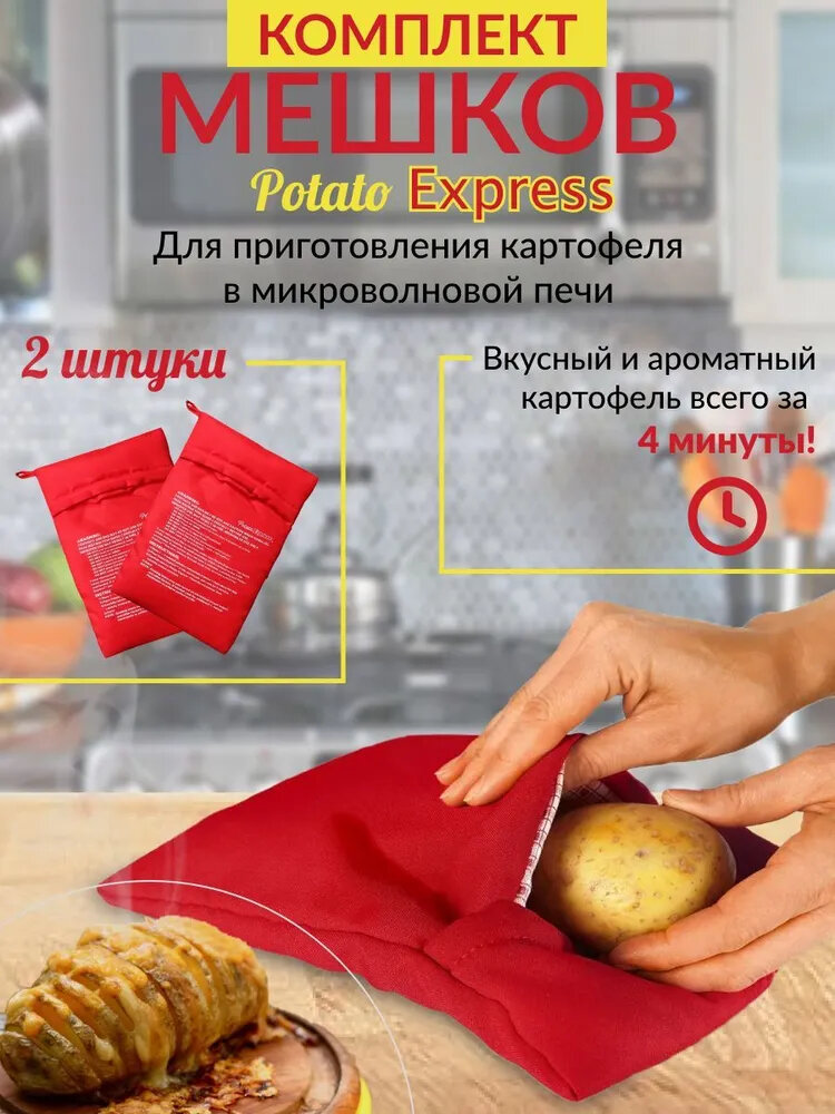 Комплект мешков 2 шт для запекания картофеля и овощей в микроволновой печи Potato express интересное: