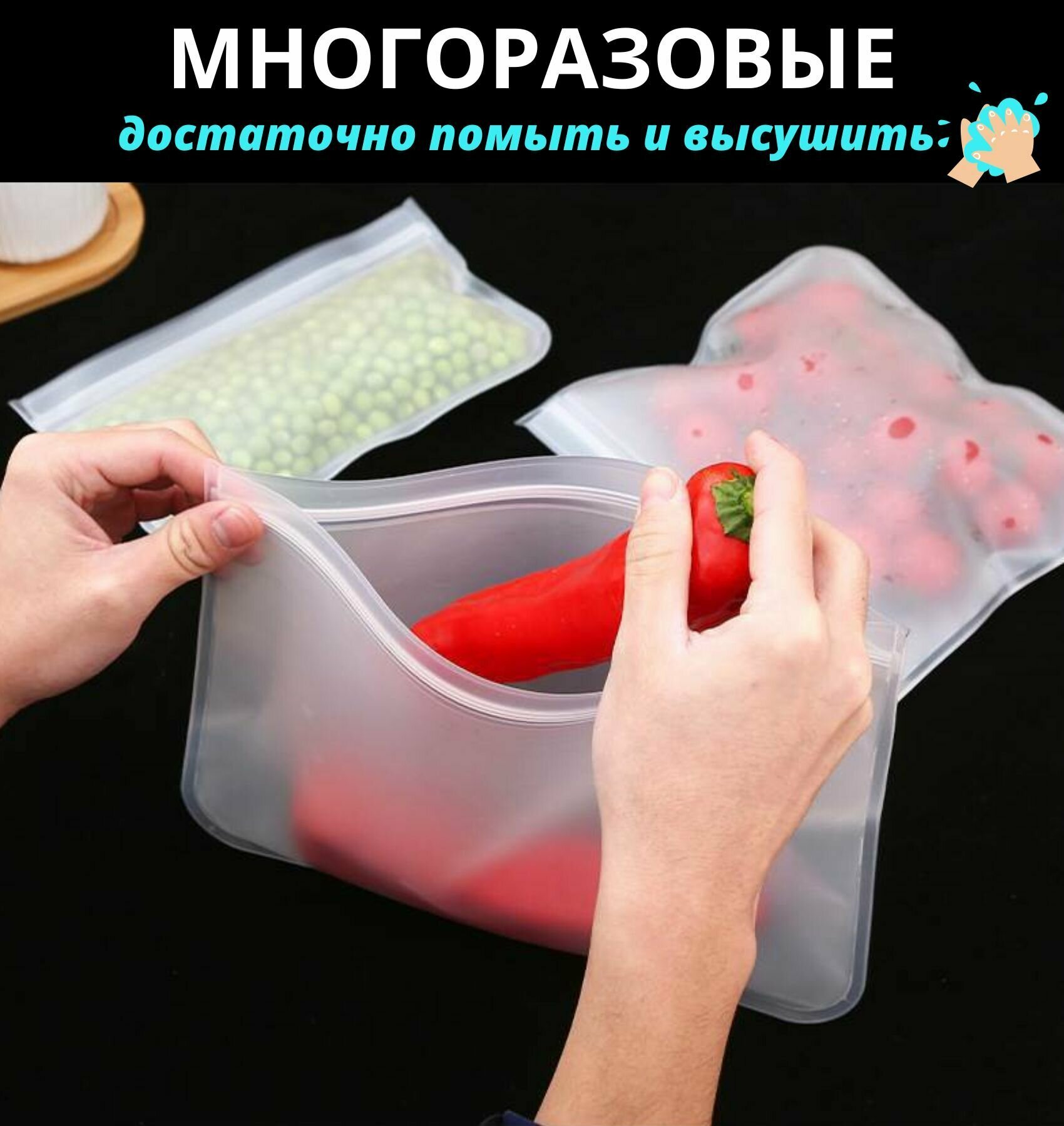 | Комплектация | Пакеты силиконовые размер 28*20,4 см - 3 шт |