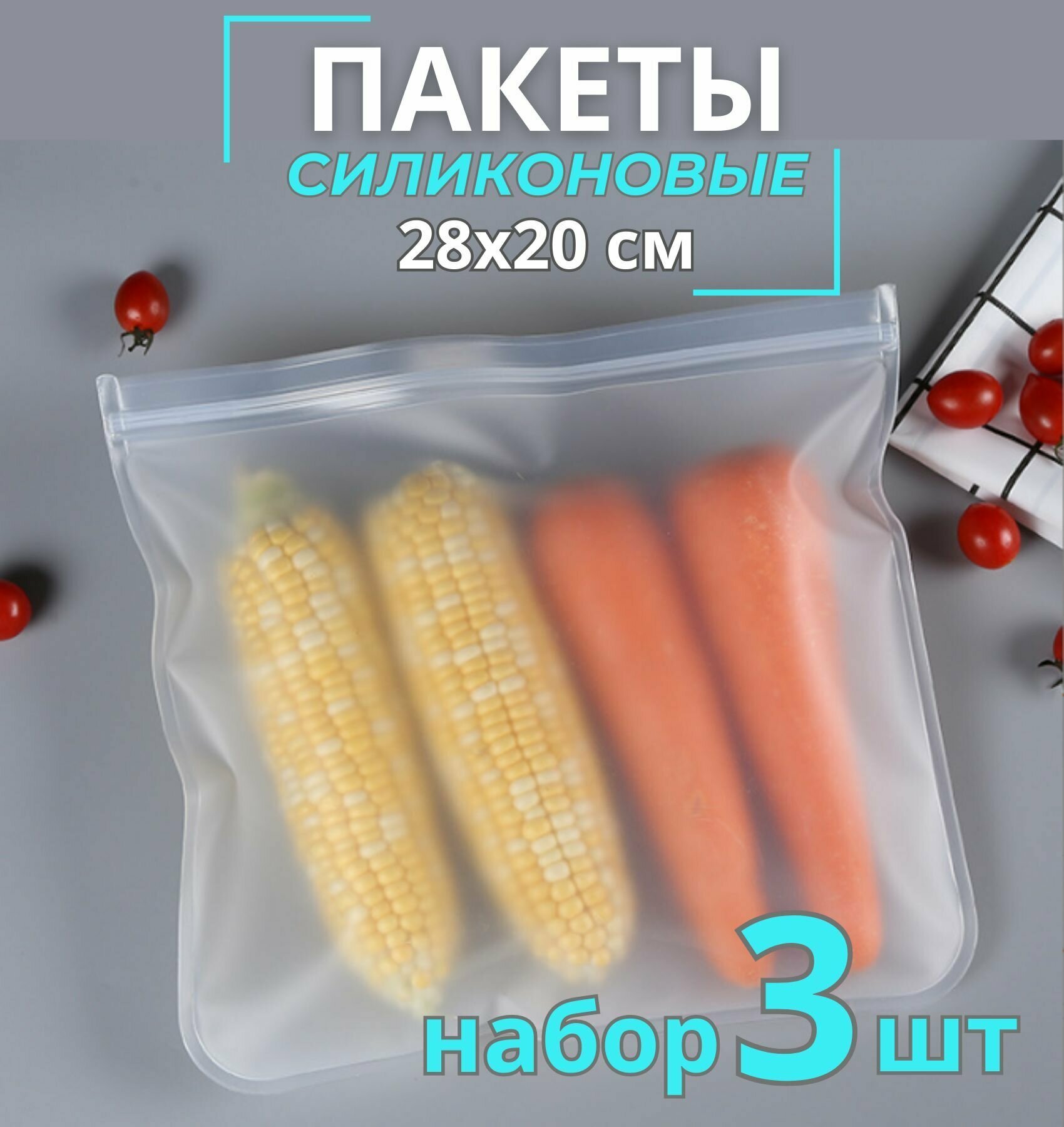 Купить Пакет для хранения продуктов, силиконовый (28х20,4 см) 3 шт / зип пакеты для продуктов / пакет для заморозки / пакеты пищевые / zip lock