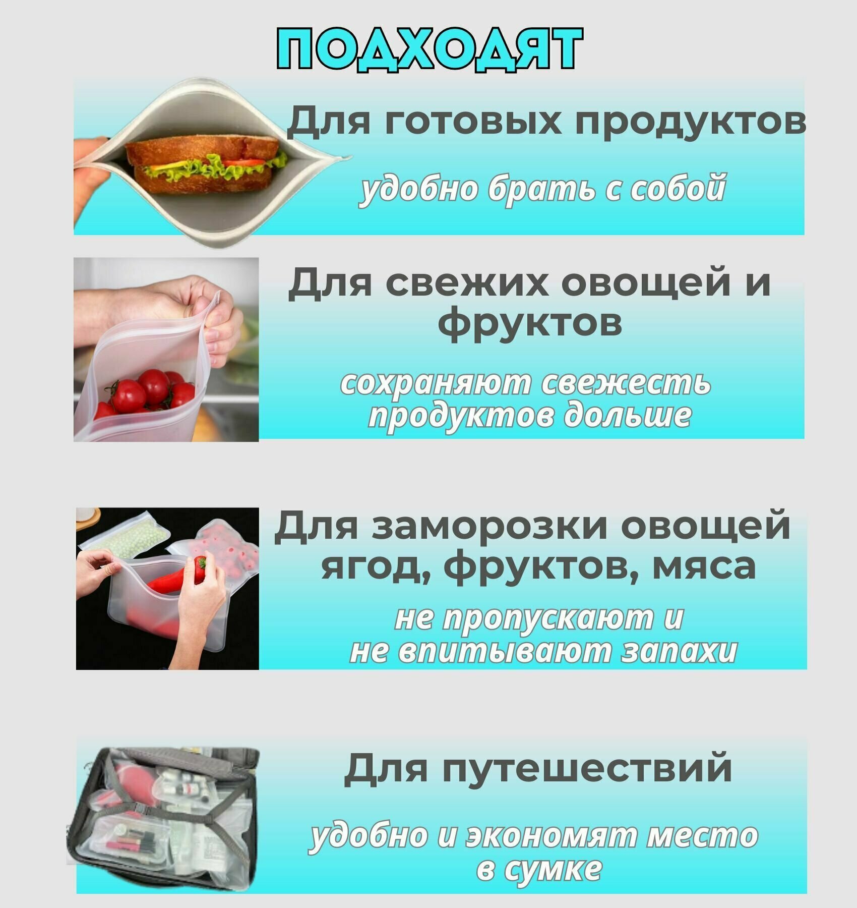 Пакет для хранения продуктов, силиконовый (28х20,4 см) 3 шт / зип пакеты для продуктов / пакет для заморозки / пакеты пищевые / zip lock интересное:
