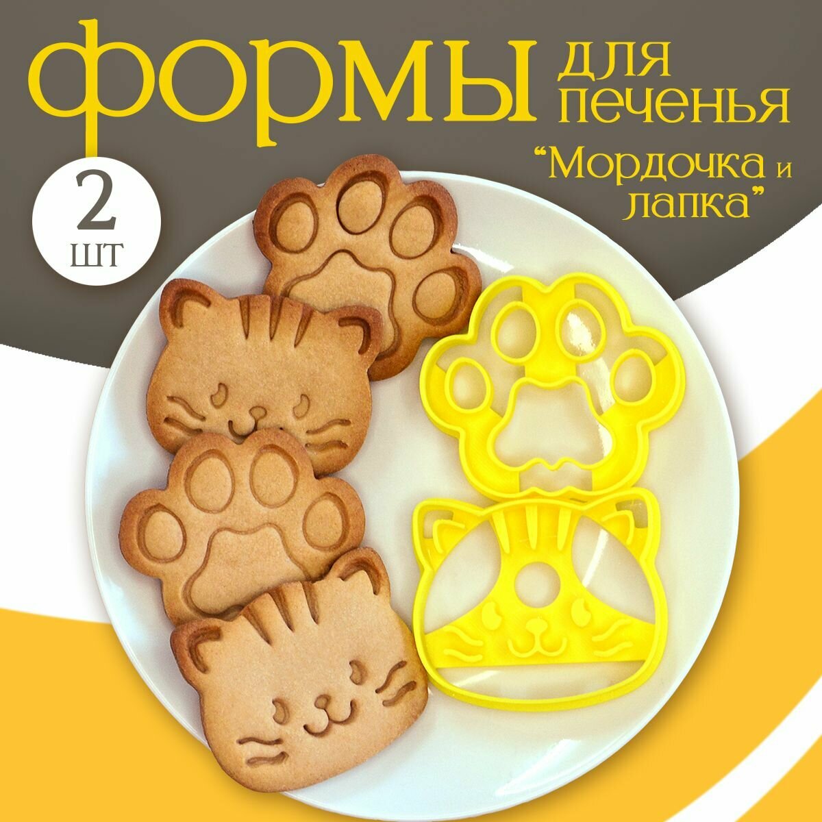 Форма для вырубки теста, набор "Мордочка и лапка" для печенья и пряников, котик. интересное: